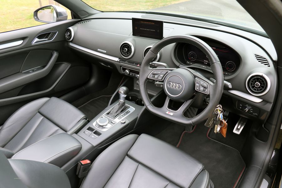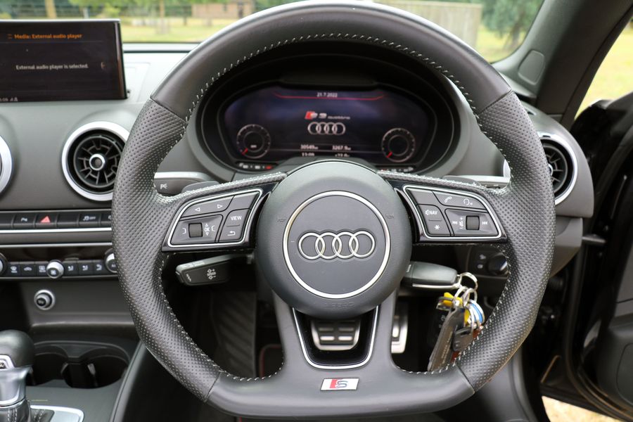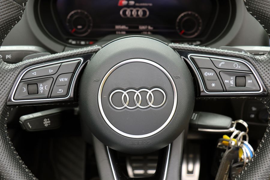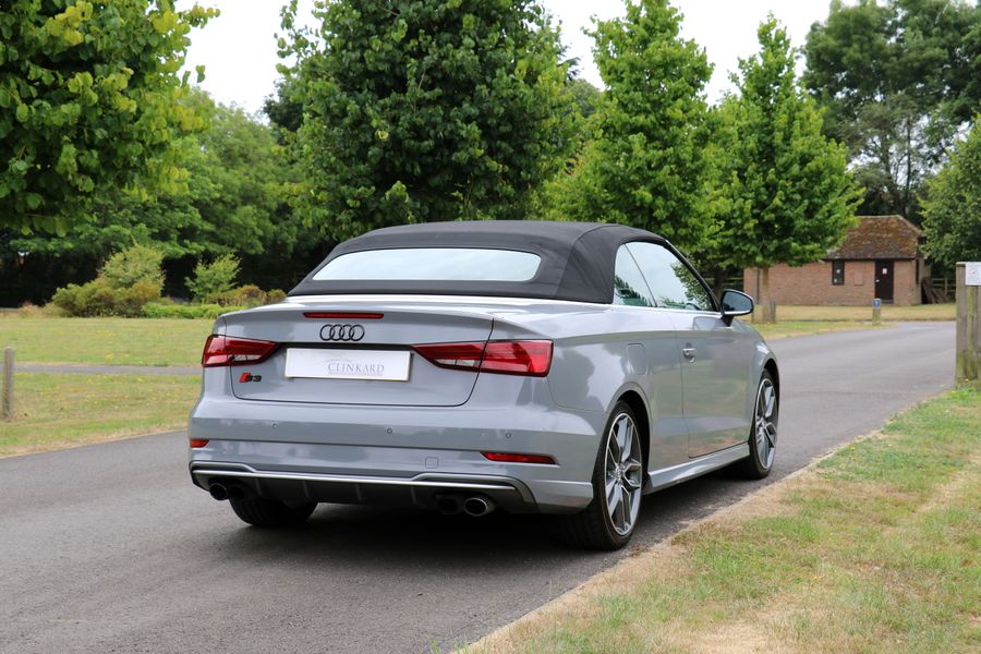 2017 '17' reg with 31,150 miles. Phantom Black with Black Leather, Tech Pack including Apple Car lay and Virtual Cockpit, Heated Seats, Cruise Control, Park Assist Front and Rear, 19" RS Alloy Wheels. Full Audi Main Dealer service History. This is a very well looked after S3 Convertible and has been wrapped in Nardo Grey which as well as looking really cool gives the added benefit of protecting the Phantom Black Paintwork underneath.