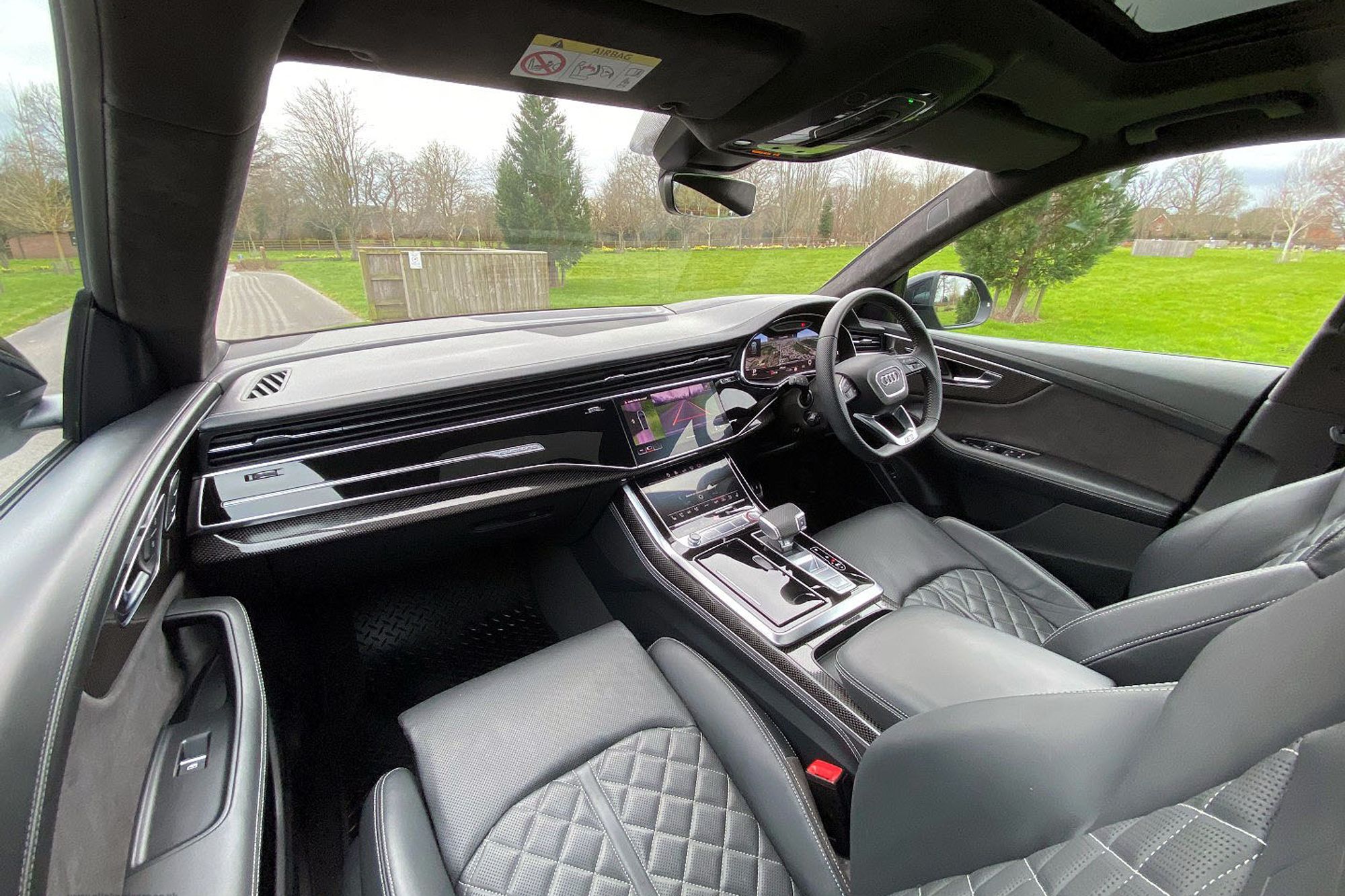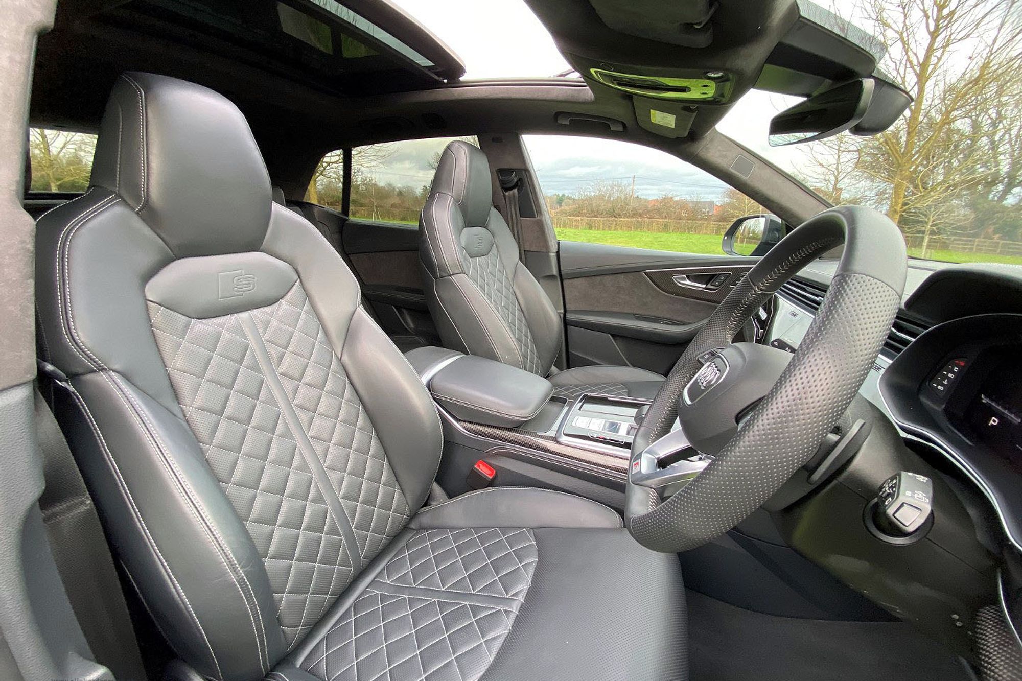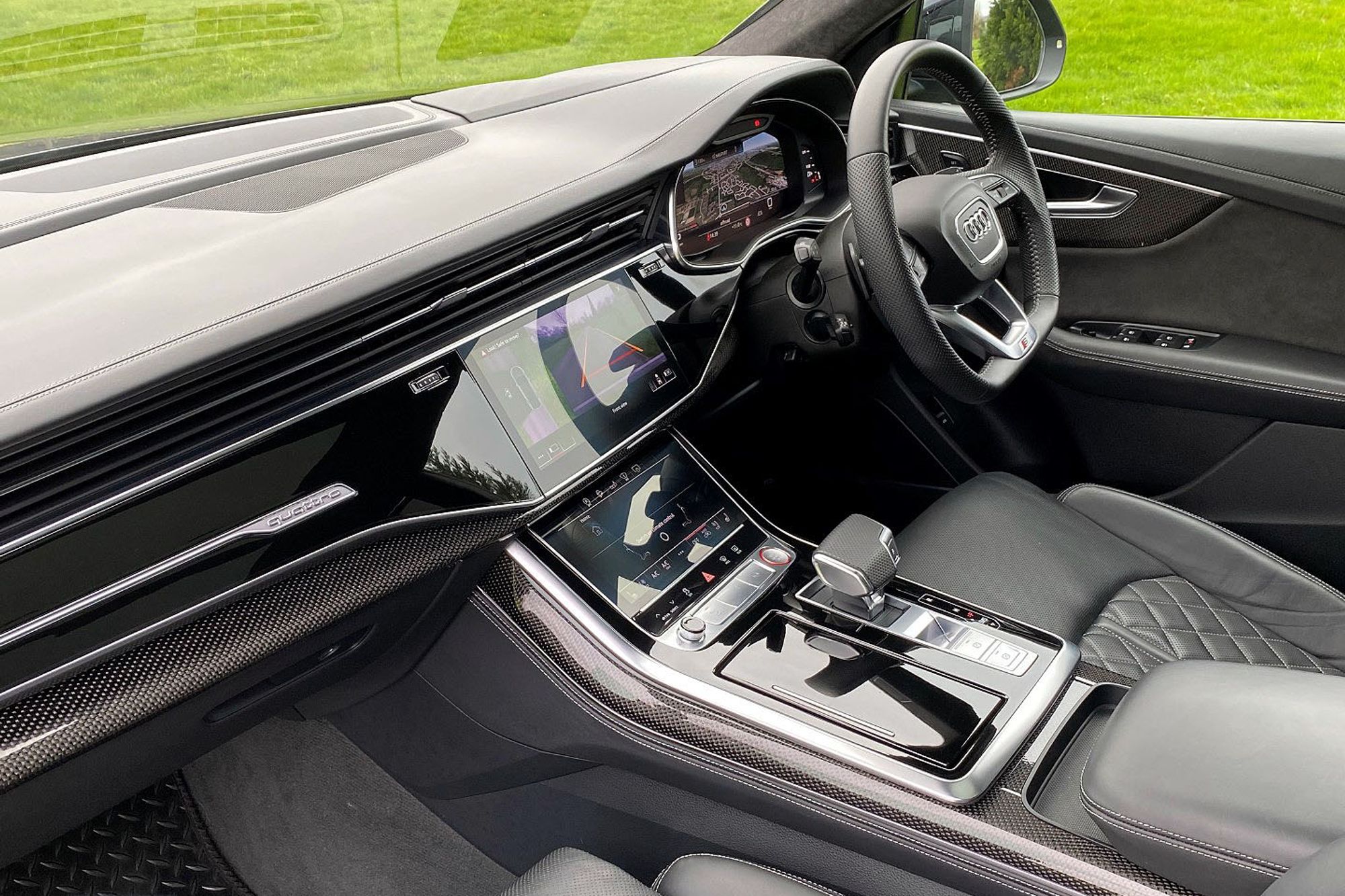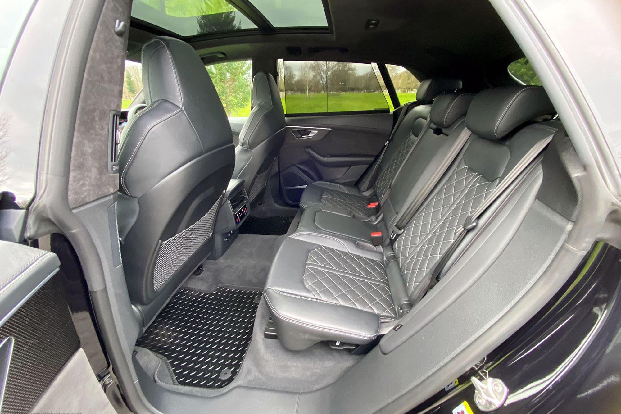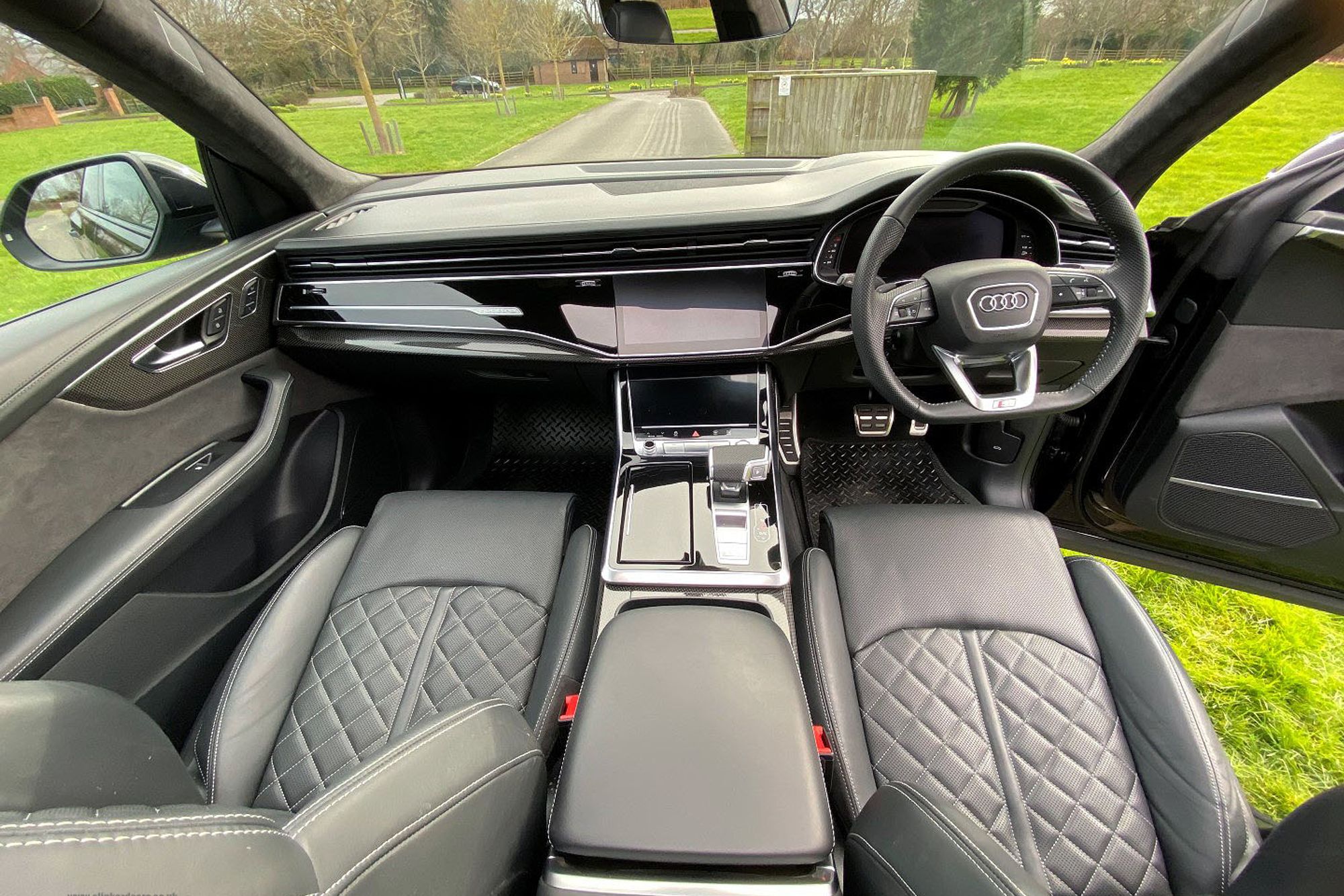 2019 '69' reg with 14,633 miles. Mythos Black with Black Diamond Quilted Leather with Silver Contrast Stitching. Full Vorsprung Package, 24" Vossen Alloy Wheels in Satin Black, Head Up Display, Panoramic Sliding Glass Roof, 360 Degree Surround Camera System, Carbon Fibre Interior Trim Package, Bang & Olufssen Surround Sound System, Wireless Phone Charging, Heated and Cooled Front Seats, Rear Digital Climate Control, Electric Rear Side Blinds, Configurable Mood Lighting, Radar Assisted Active Cruise Control, Lane Change Assist, Blind Sport Monitor, Electric Folding Memory Heated Door Mirrors, Black Gloss Exterior styling Package, Roof Rails in Black, Privacy Glass, Illuminated Puddle Lights, Tracker Anti Theft System. Full Audi Service History. 1 Owner From New. This car also has Fitted Rubber Mats over the Carpet Mats which in itself isn't a huge option, but it does provide an insight into how it's one owner has looked after it. This is a very nice car.
