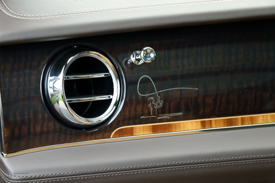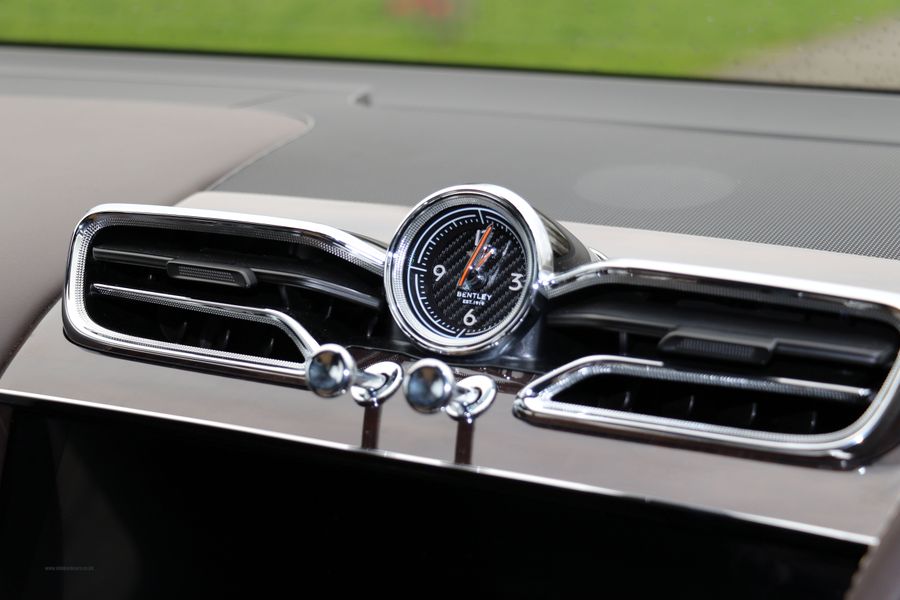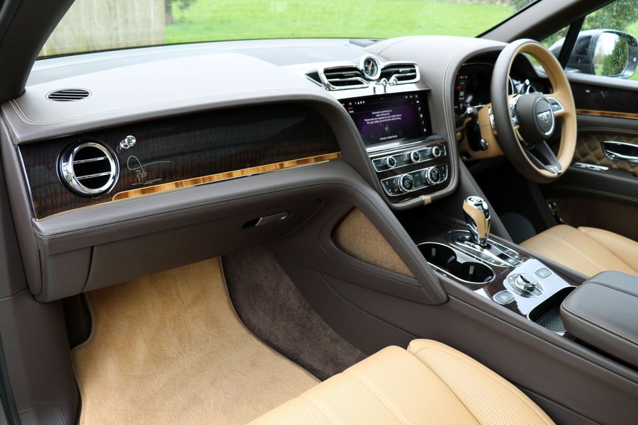 · Body Colour Painted Wheels with Bright Machined Faces, Bespoke Interior Colour Split based on Colour Split C with Camel Main Hide and Burnt Oak Secondary Hide, Camel to Gear lever, Burnt Oak to Driver and Passenger Knee Roll, Contrast Stitching to Standard Areas in Camel. Contrast Hand Cross stitching in Burnt Oak to Steering Wheel and Seats, Mulliner Overmats (Front Rear) with Blind Stitching and Piping, Dark Fiddleback Veneer with Liquid Amber Cross Banding and Boxwood Inlay to Fascia and Waistrails, Sand Herringbone Tweed to the following areas: Grab Handles IP Wing Insert, Back of Seat Pockets, Interior Tabs, Steering Wheel Tab and Door Cards. Door Cards to have Linen Contrast Stitch, Bespoke Woodlands Embroidery in Burnt Oak and Blind Stitch to Seatbacks, Bespoke Overlay to Passenger Fascia. This car also has the balance of its 3 Year Service Package and Manufacturers Warranty that runs until, March 2025.