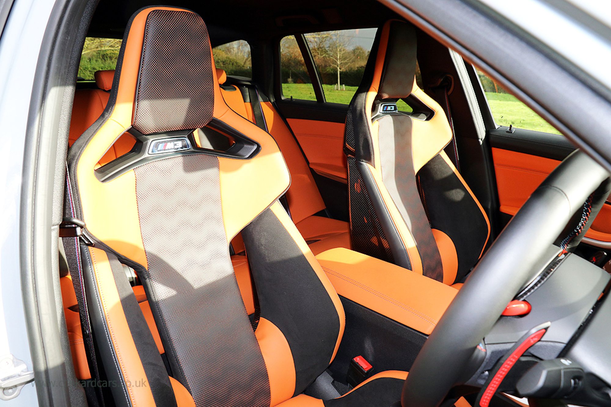 2023 '72' reg with 12,250 miles. Brooklyn Grey with Kylami Orange and Black Bi-Colour Full Merinho Leather, 19"/20" 825 M Double Spoke Wheels in Orbit Grey, Heated Steering Wheel, BMW M 50 Years Badges, M Brakes with Black Calipers, Comfort Access, Extended Storage Contents, M Carbon Bucket Seats, Driving Assistant-Professional, Laserlights, Parking Assistant Plus, Drive Recorder, M Carbon Exterior Styling, Ultimate Pack. This is a Spectacular looking M3 Touring with a great specification and low mileage.