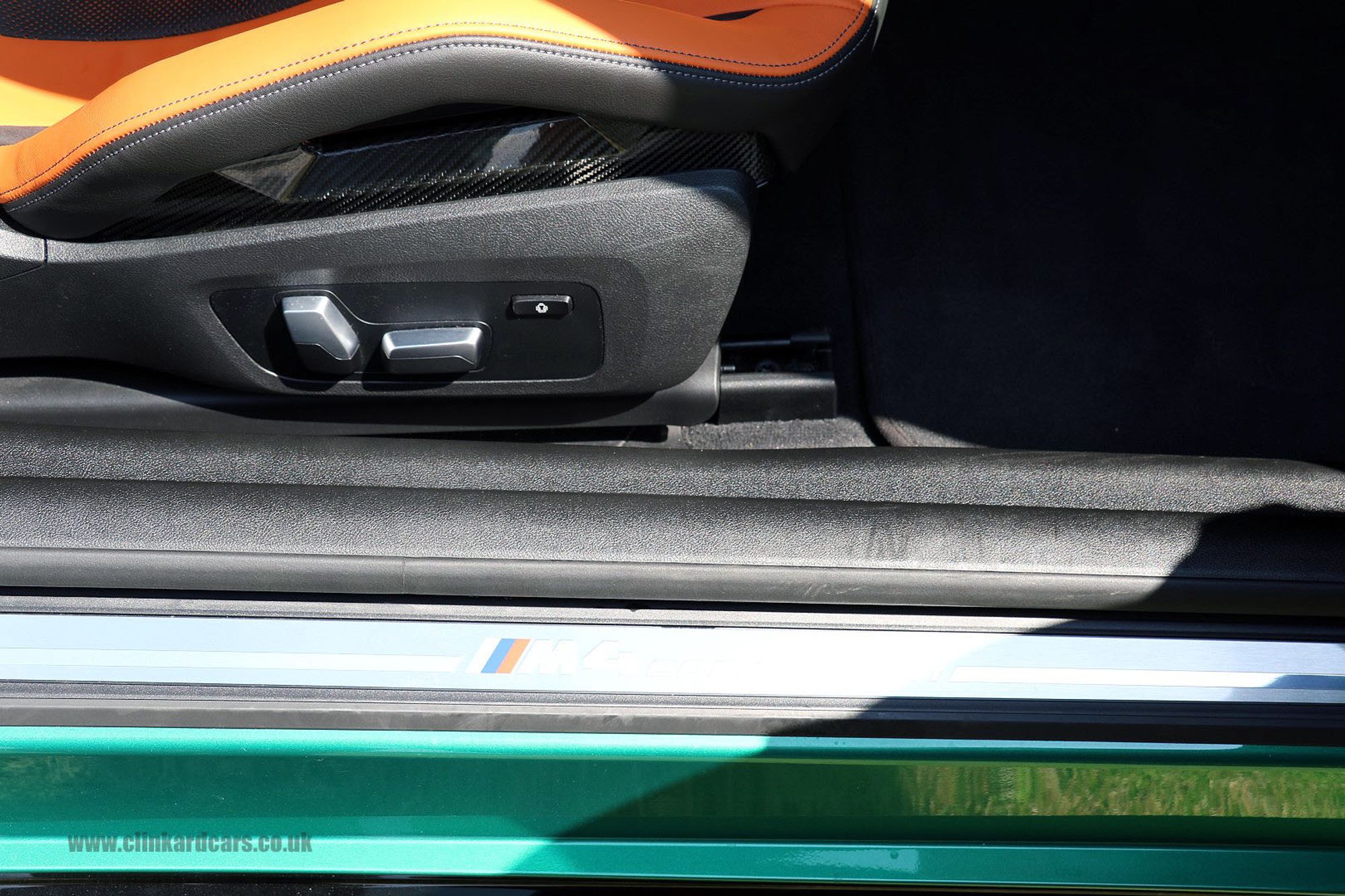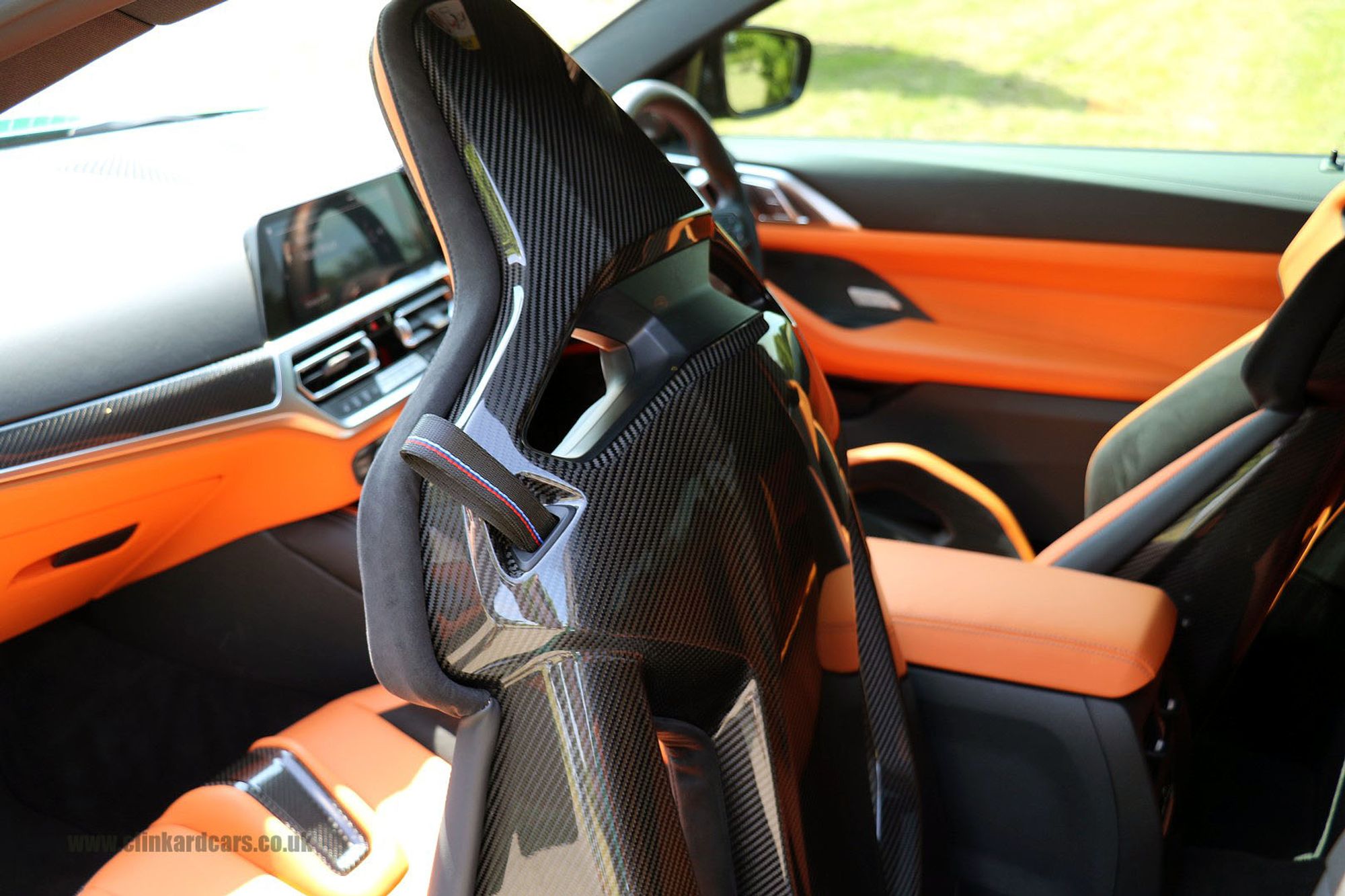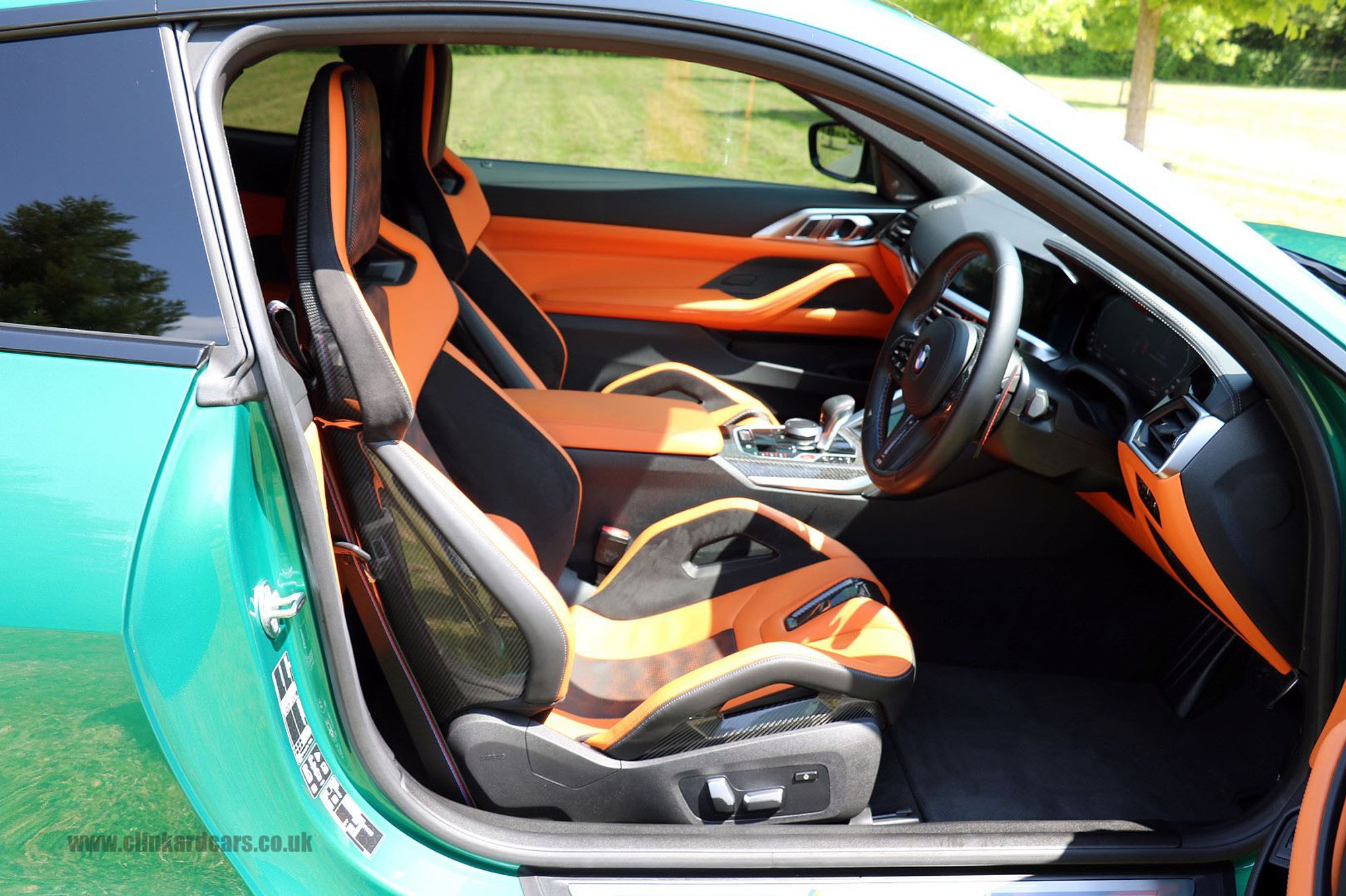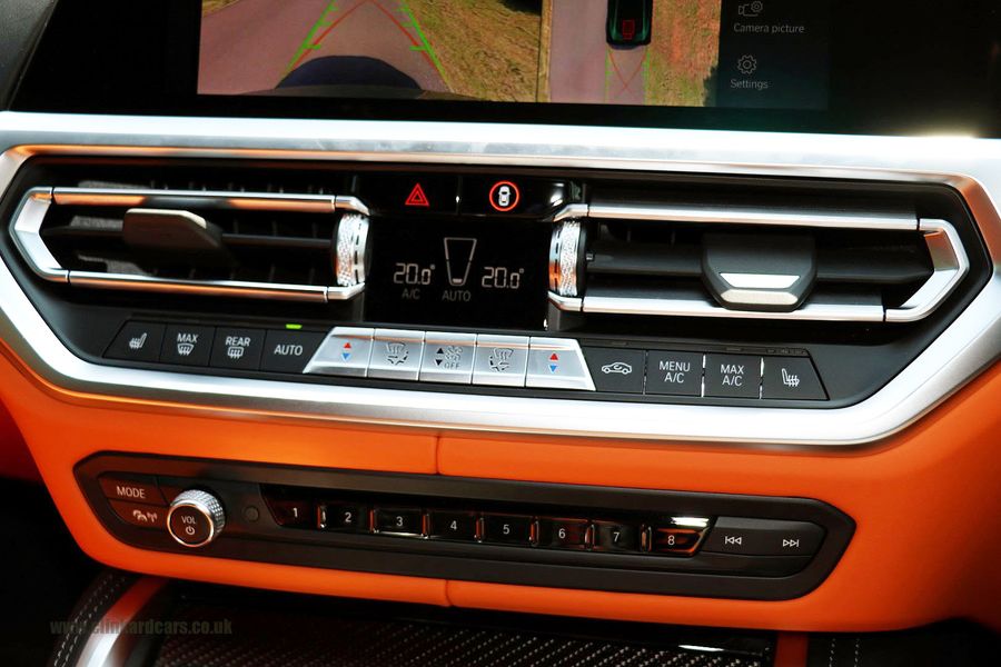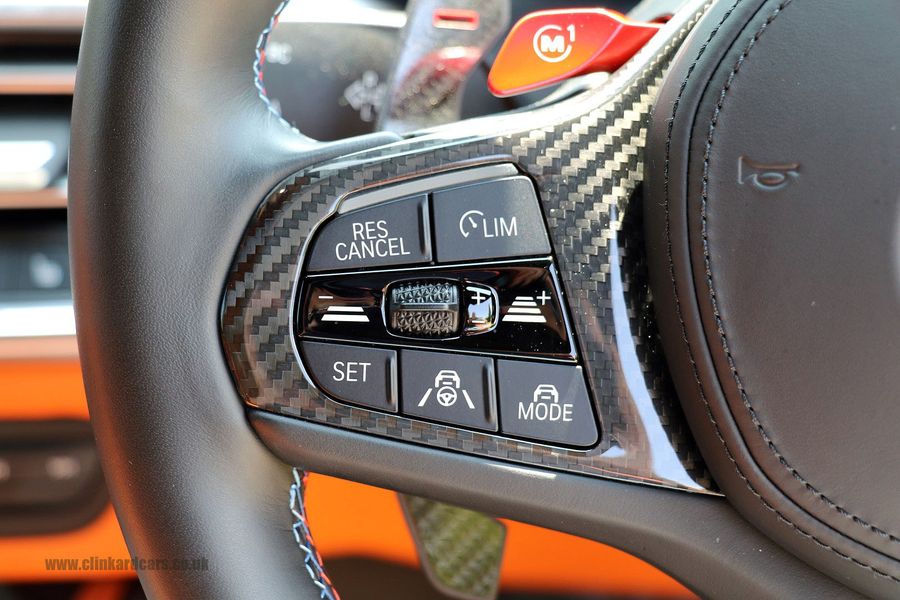 2022 '22' reg with 5924 miles. Isle of Man Green with Full Black and Kylami Orange Merinho Leather, Ultimate Package, Carbon Fibre M Bucket Seats, M Carbon Fibre Exterior Package, Carbon Fibre Dash Inserts, Head Up Display, Carbon Fibre Rear Spoiler, Carbon Fibre Roof, Carbon Fibre Front Splitter, Carbon Fibre Front Air Intakes, Privacy Glass, Tinted Front Side Windows, Red Brake Calipers, Black Exterior Styling Package, Carbon Fibre Door Mirrors, Active Lane Assist, Carbon Fibre Exhaust Finishers and Rear Splitter, BMW Connected Drive, Sports Exhaust, Heated Seats, Navigation with Bluetooth, Music Streaming and APPS, Harmon Kardon Surround Sound System, 360 Degree Surround Camera System, Heated Multifunction Carbon Steering Wheel, Carbon Fibre Gear Change Paddles, Driving Recorder, Parking Assistant Plus.