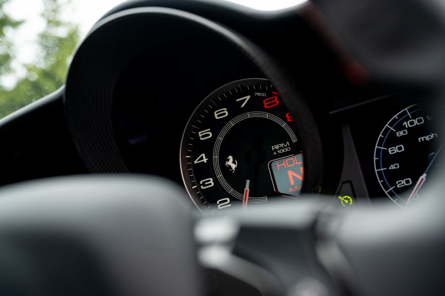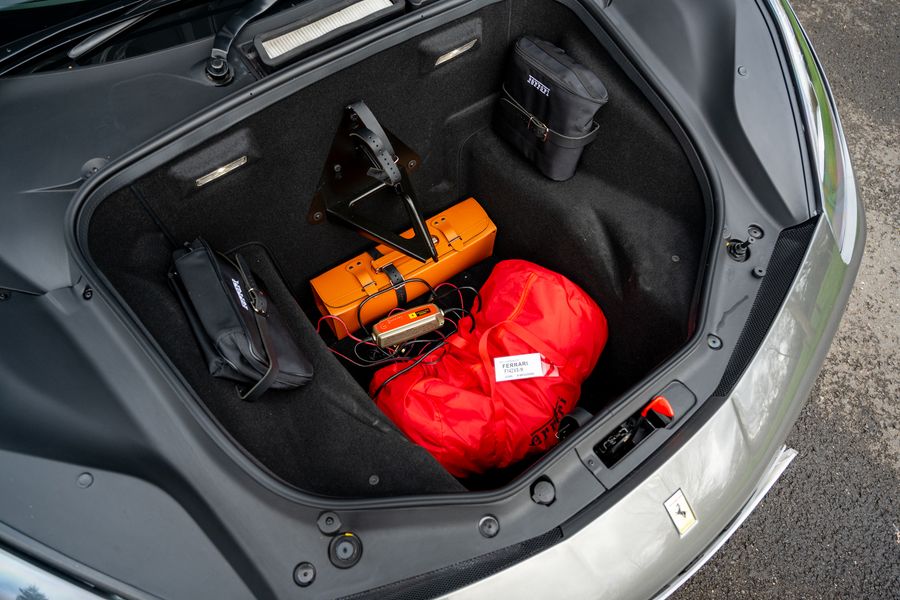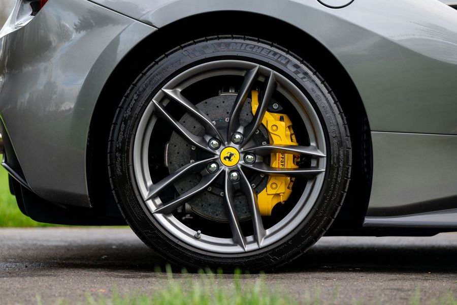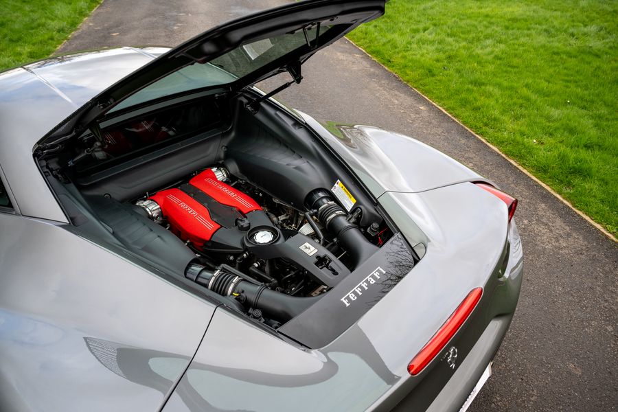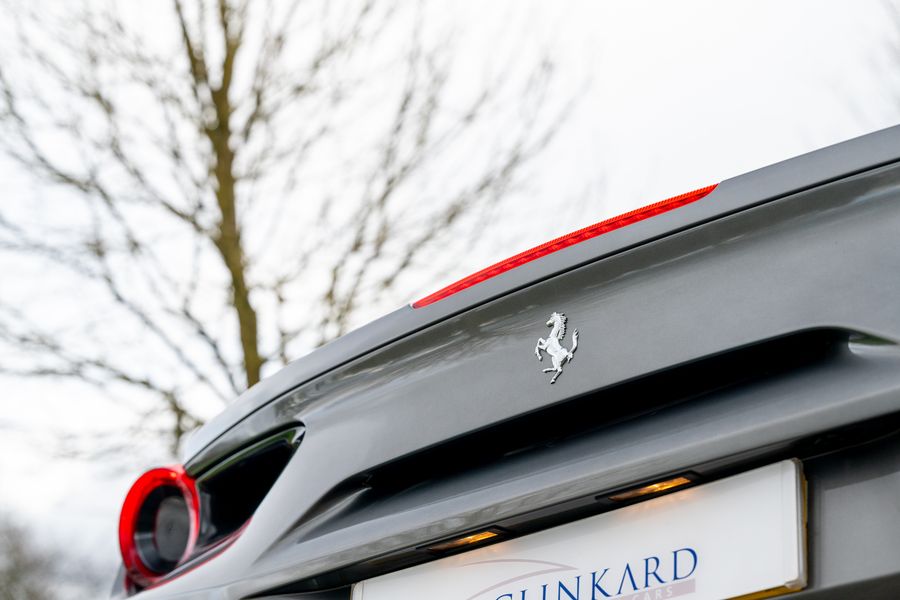 2016 '16 Plate' With 8,250 miles. Grigio Ferro Metallic Special Ferrari Historic Colour Option With Nero Leather & Rosso Contrast Stitching. A Big Spec From New: Adaptive Front Light System, Yellow Brake Calipers, Carbon Fibre Rear Air Ducts, Carbon Fibre Side Air Splitter, Carbon Fibre Under Door Cover, Carbon Fibre Driving Zone with LED Gear Change Lights, Carbon Fibre central Bridge, Carbon Fibre Upper Tunnel Trim, Dash Inserts in Carbon Fibre, Suspension Lifter, Cavallino Stitched Headrests in Rosso Contrast Stitching, High Emotion Low Emission, Scuderia Ferrari Shields, Nav Trak Anti Theft System, Front and Rear Parking Sensors, Matt Grigio Corsa Wheels, Full Electric Seats, Coloured Steering Wheel, Collapsible Spare Wheel. PPF Forward, Front Bumper, Bonnet, Wings And Doors. Full Ferrari Main Dealer Service History. Will Be Freshly Serviced By Ferrari And Come With Ferrari Warranty.