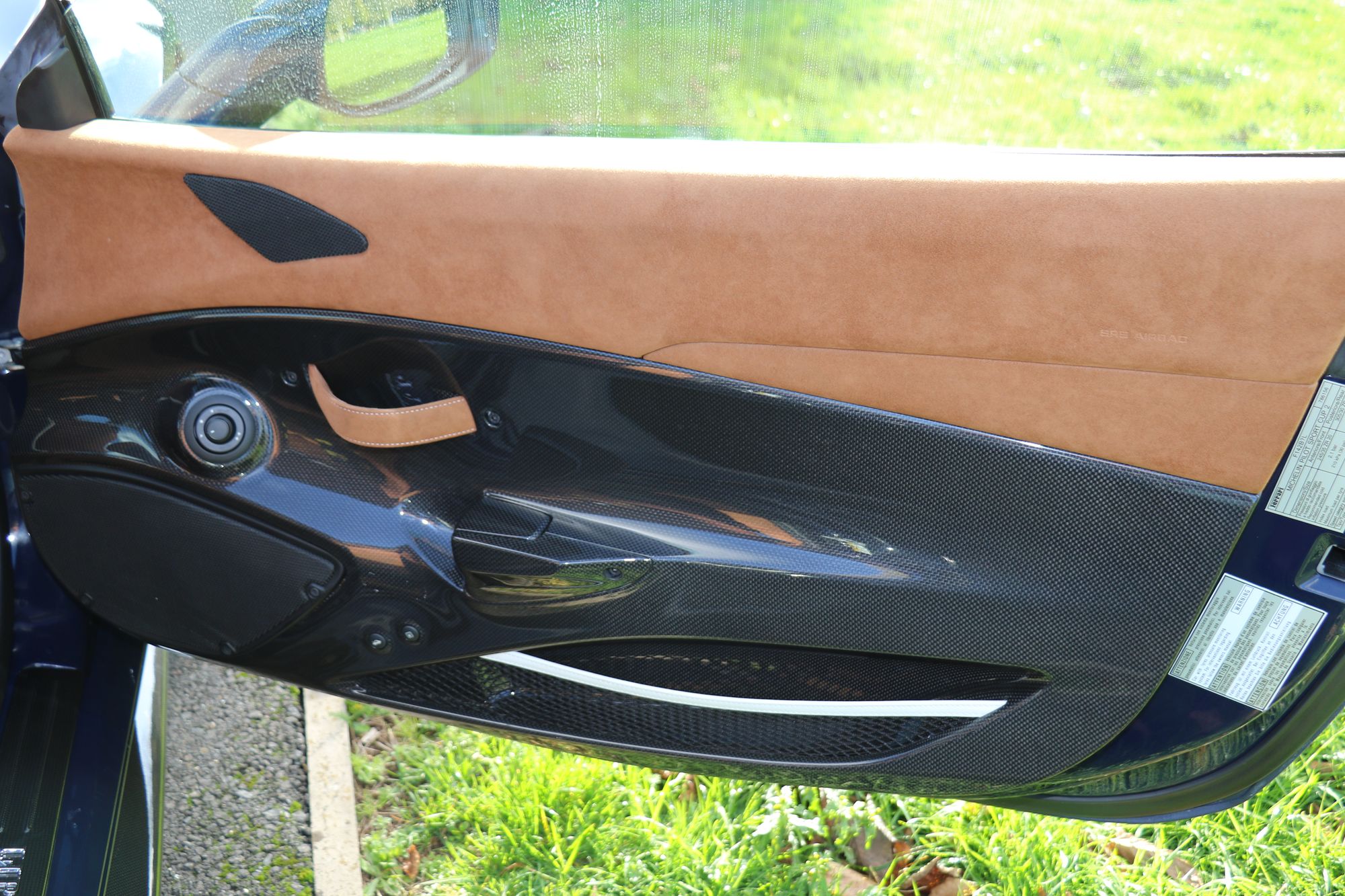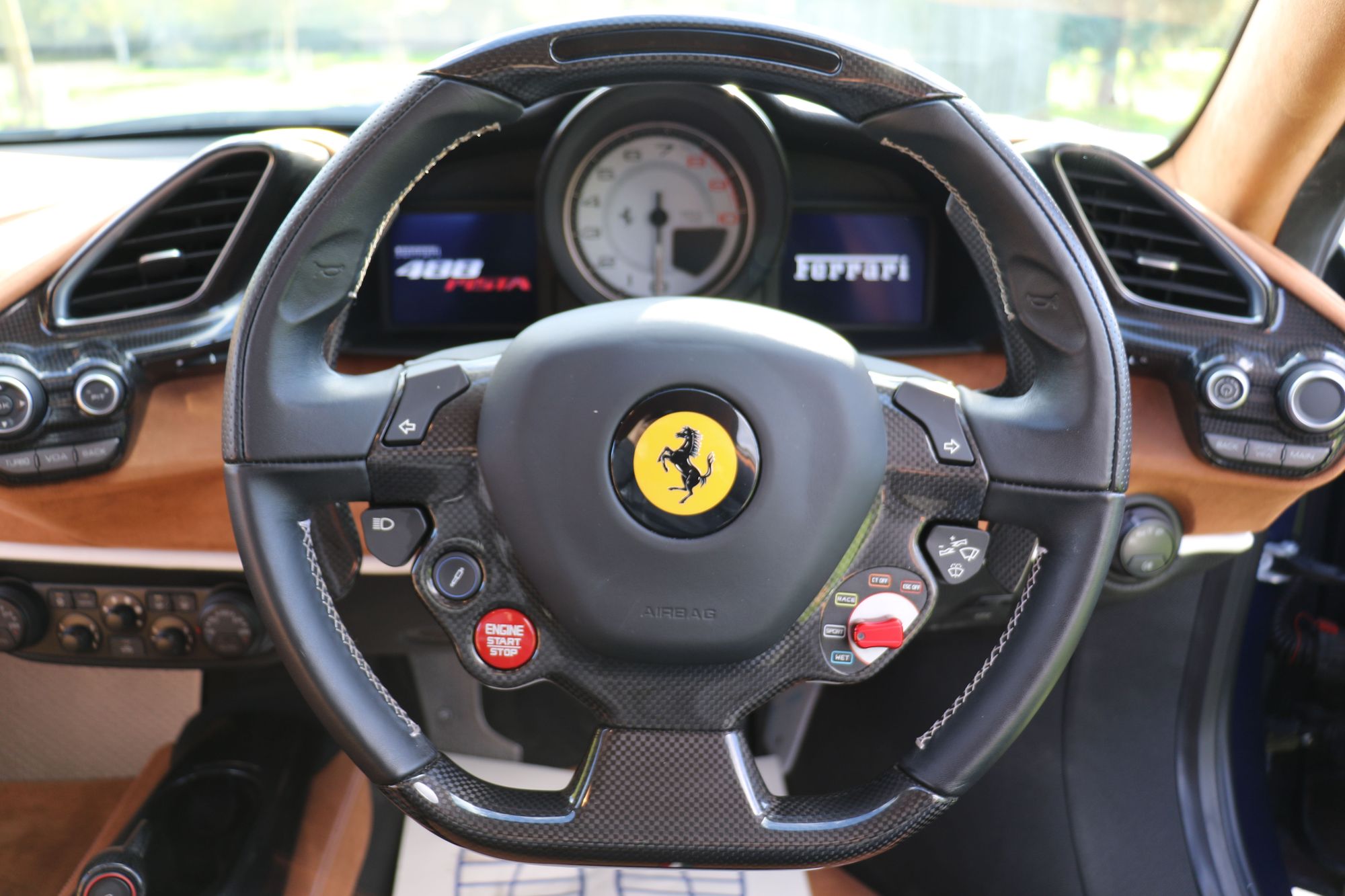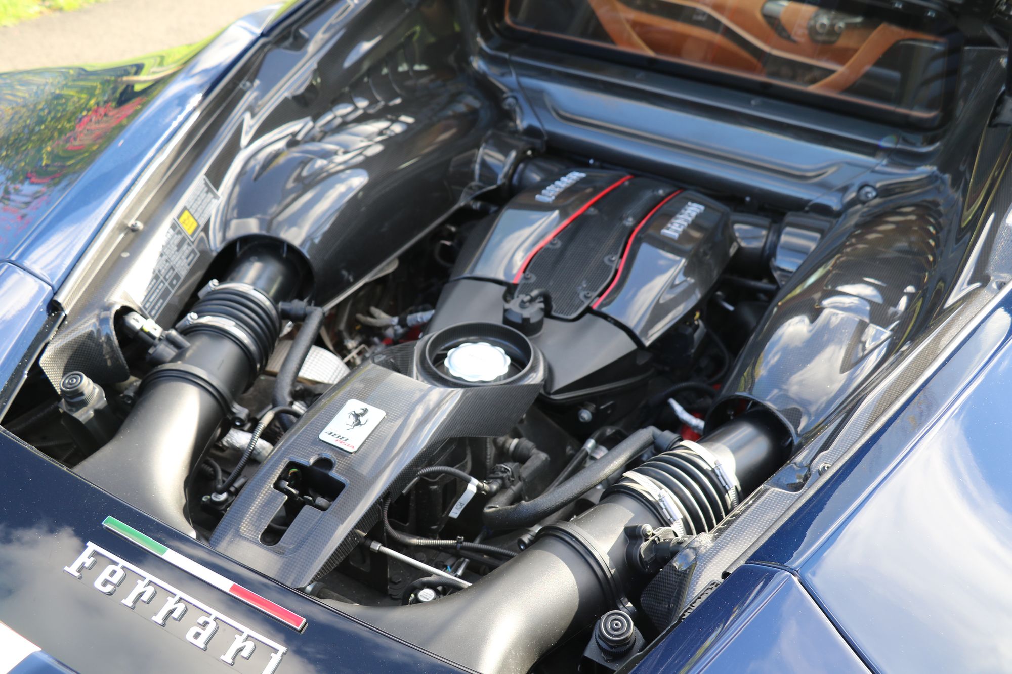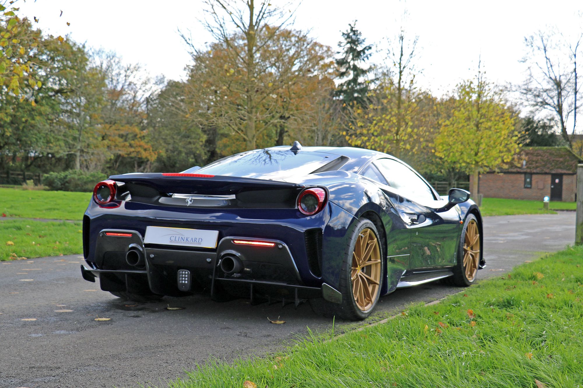 2019 '19' reg with 3388 miles. Ferrari Historic Colour Blu Scozia with Cuoio Alcantara and Bianco Contrast Stitching, Large Carbon Fibre Race Seats, Two Tone Stripe, 20" Forged Gold Rims, Nero Brake Calipers, Carbon Fibre Front Flaps, Front Air Vents in Carbon Fibre, Carbon Fibre Under Door Cover, Carbon Fibre Side Air Splitter, Carbon Fibre Rear Moulding, Rear Diffuser in Carbon Fibre, Engine Covers in Carbon Fibre, AFS System, Suspension Lifter, Interior and Exterior Automatic Dimming Mirrors, Front and Rear Parking Cameras, Black Ceramic Exhaust Pipes, Scuderia Ferrari Shields, High Emotion Low Emission, Personalisation Pack, Horse Stitched Head Rests in Bianco, Racing Seat Lifter, 4 Point Safety Harnesses, Coloured Mats with Logo, Alcantara Seats Inner Trim Cuoio, NavTrek Anti Theft System, Integrated Audio System, RadioNav System with Bluetooth, White Rev Counter, Carbon Fibre Upper Tunnel Trim, Carbon Fibre Inner Sill Trim. This is an Amazing looking car in this colour combination and was previously a celebrity owned Ferrari. It also has a full body liquid PPF protecting the lovely paintwork.
