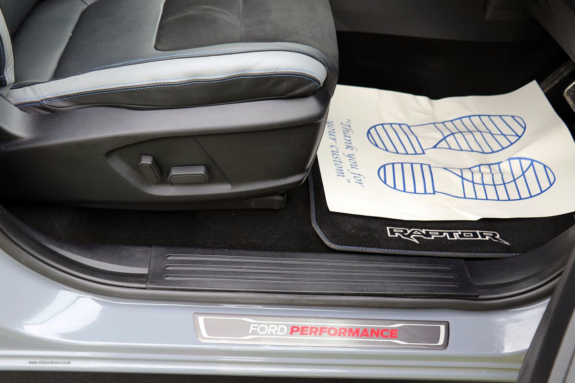 2021 '21' reg with 4554 miles. Conquer Grey with Black Leather/Alcantara and Contrast Blue Stitching, Automatic Gearbox, Side Steps, Sump Guard, 17" Wheels in Black with General Grabber A/T Tyres, Closed Rear Pick Up, Tinted Tail Lights, Tow Bar with Electrics, Climate Control Air Conditioning, Wheel arch Extensions in Black, Heated Windscreen, Stereo Radio with Navigation, Multimedia Interface, Bluetooth and Music Streaming and APPS Control, RAPTOR decal pack, Lane Warning Assist, Reversing Camera, Centre Console Storage Box with Cooling Vent from Air Conditioning, Multifunction Sterring Wheel with Cruise Control, Heated Seats, 1 Owner and vat qualifying. Price is plus vat.