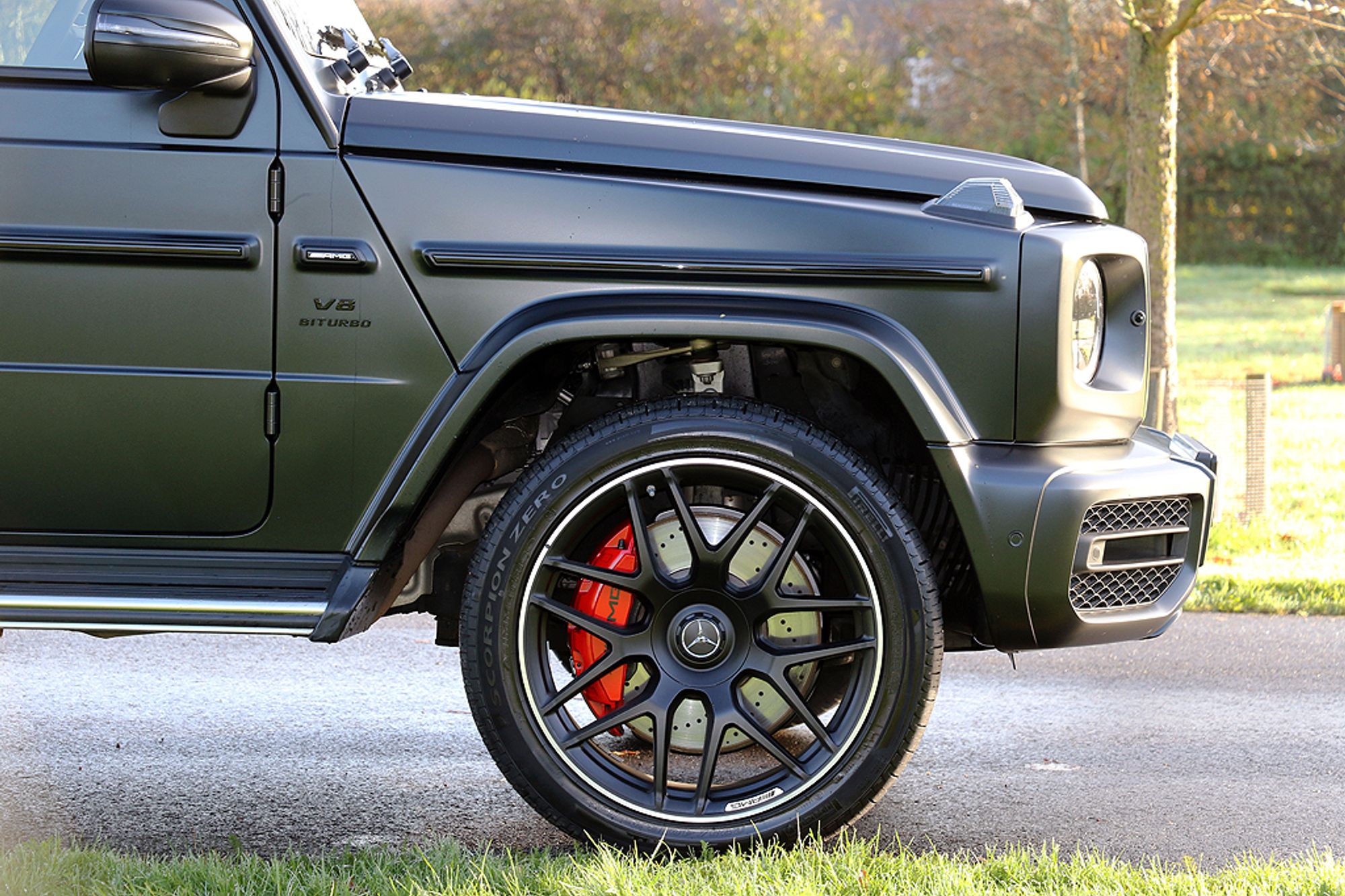 2023 '72' reg with 7061 miles. GManufaktur Night Black Magno with G Manufaktur Black Exclusive Nappa Leather, AMG Night Pack, 22" AMG Cross Spoke Forged Wheels Painted in Matt Black with High Sheen Rim, Exterior Protective Strip with Trim Insert in Black. This is a Stunning looking G63 Magno Edition from every angle, and it has Just arrived!