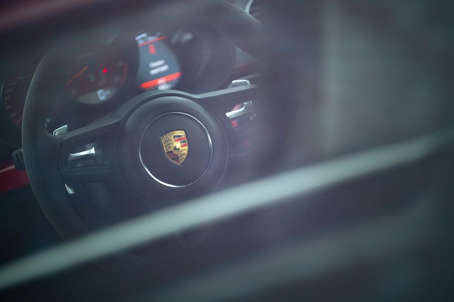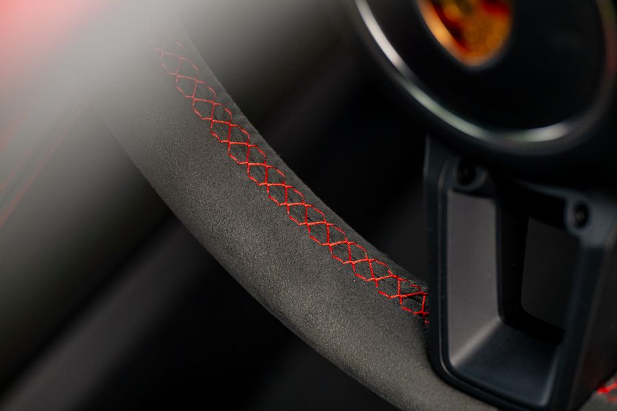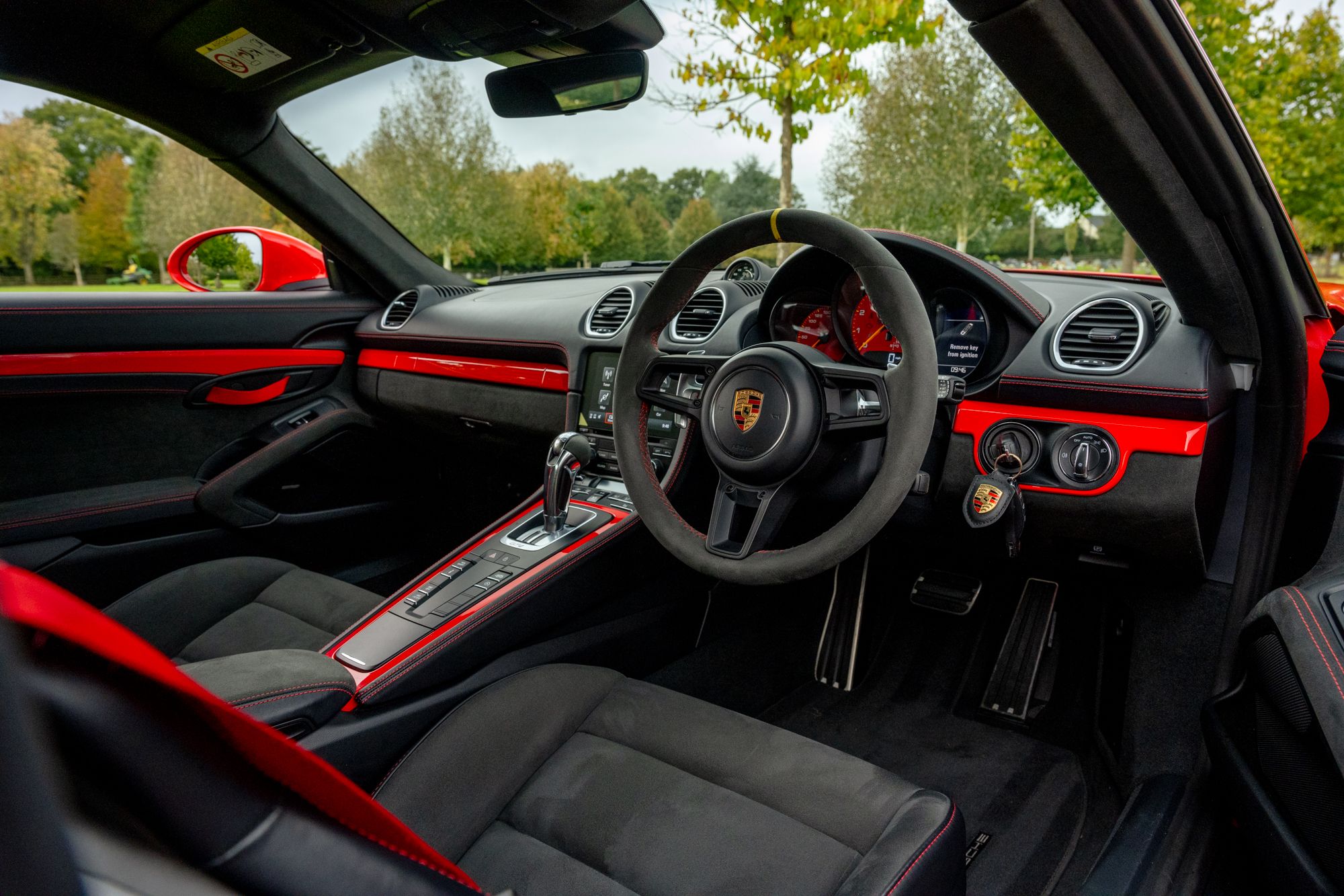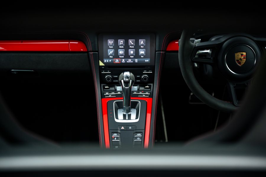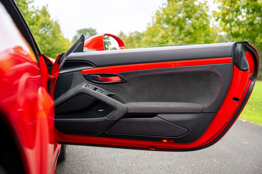 2022/22 With 8,600 Miles . Guards Red With Race Tetx Interior With Extensive Items In Leather Black , Decorative Stitching Contrasting Colour Red , PORSCHE logo Painted in Satin Black , Exclusive Design Fuel Filler Cap , Chrono Package and preparation for lap Trigger, Steering Wheel Rim with Top Centre for Lap trigger , Steering Wheel Rim With Top Centre Marking in Yellow , Passenger Footwell Storage Net , Interior Package painted (leather) , Seats Belts in Guards Red ,Intstrument Dials Guards Red , Decorative Stitching in Contrasting Colour , Bose Surround System , Led Main Headlight Including Porsche Dynamic light System Plus (PDLS Plus) Electrically Folding Exterior Mirrors Including Courtesy lighting , Automatically Dimming mirrors With Integrated Rain Sensor , Park Assist (Rear ) With Reversing Camera .