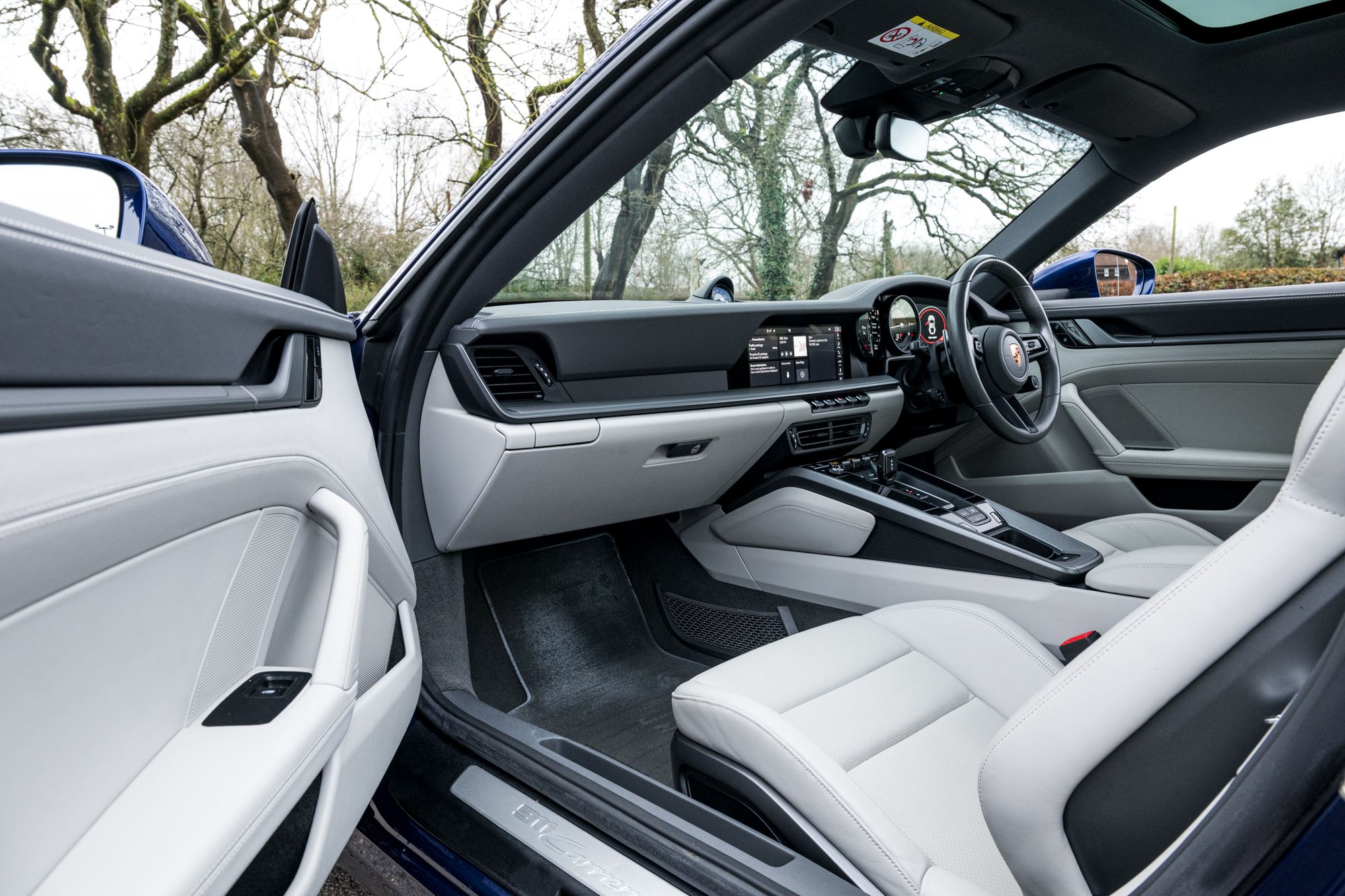 2020 '20 Plate With 26,400 Miles. Finished in Gentian Blue with Slate Grey Crayon leather, Sport Exhaust System, Heated GT Sports Steering Wheel in Leather, '911' LOGO, Electric Slide/Tilt Sunroof, 20/21 Inch Carrera S Wheels, Electric Folding Mirrors, Sports Chrono Package incl Mode Switch, Automatically Dimming Interior and Exterior Mirrors With Integrated Rain Sensor, Lane keep assist incln Speed Limit Indicator, 4-way Electric Sports Plus Seats, Heated Seats, Front & Rear Park Assist, Storage Package And Windscreen With Grey top-Tint. Full Porsche Service History Below: