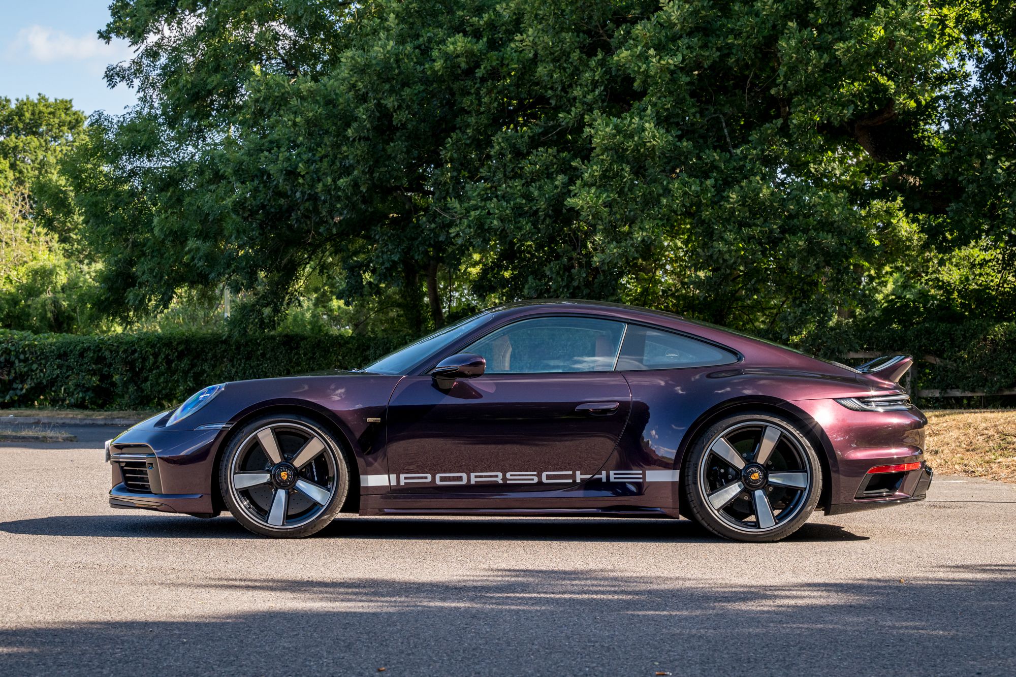 2023 '72 Plate' With 2,490 Miles Finished in PTS Amethyst Metallic With Heritage design two-tone Cognac & Black leather interior with contrasting houndstooth Seat Centres, Power Steering Plus , Ioniser , Sun Visors In Race- Tex, Electric Folding Mirrors Exterior Mirrors , Interior Package Leather , Exclusive Design Taillights , Burmester high-End Surround Sound System , Limitation Number , Porsche Start number , Individual CT- option , Park Assist Including Surround View , Light Design Package , Porsche Logo LED Door Courtesy lights. No 362 of 1250 Production. Selection Of Standard Spec Options: Rear-Axle Steering, Sports exhaust system (tailpipes in Black), PASM Sport Suspension (-10 mm), Heated GT sports steering wheel in leather, Front axle lift system, Lightweight carbon roof And 20-/21-inch Sport Classic wheels painted in Black (high-gloss). Balance of Porsche Approved Warranty: 21/02/2026. Full Topaz PPF Applied, Full Service History Porsche.