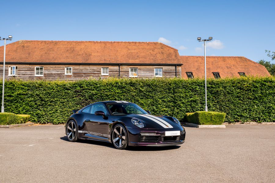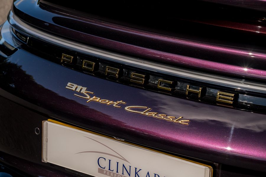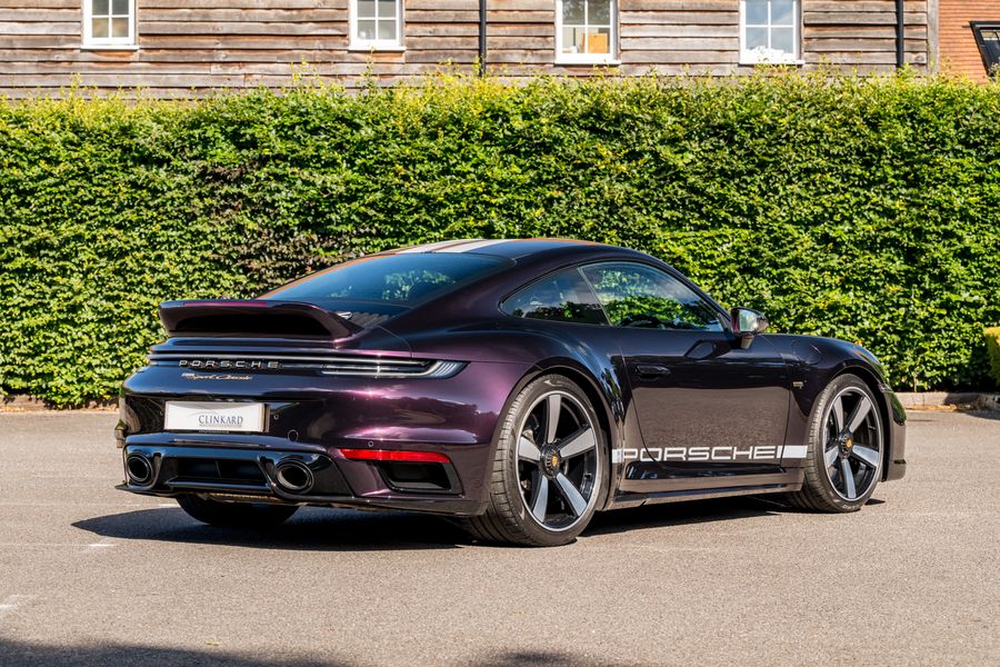 2023 '72 Plate' With 2,490 Miles Finished in PTS Amethyst Metallic With Heritage design two-tone Cognac & Black leather interior with contrasting houndstooth Seat Centres, Power Steering Plus , Ioniser , Sun Visors In Race- Tex, Electric Folding Mirrors Exterior Mirrors , Interior Package Leather , Exclusive Design Taillights , Burmester high-End Surround Sound System , Limitation Number , Porsche Start number , Individual CT- option , Park Assist Including Surround View , Light Design Package , Porsche Logo LED Door Courtesy lights. No 362 of 1250 Production. Selection Of Standard Spec Options: Rear-Axle Steering, Sports exhaust system (tailpipes in Black), PASM Sport Suspension (-10 mm), Heated GT sports steering wheel in leather, Front axle lift system, Lightweight carbon roof And 20-/21-inch Sport Classic wheels painted in Black (high-gloss). Balance of Porsche Approved Warranty: 21/02/2026. Full Topaz PPF Applied, Full Service History Porsche.