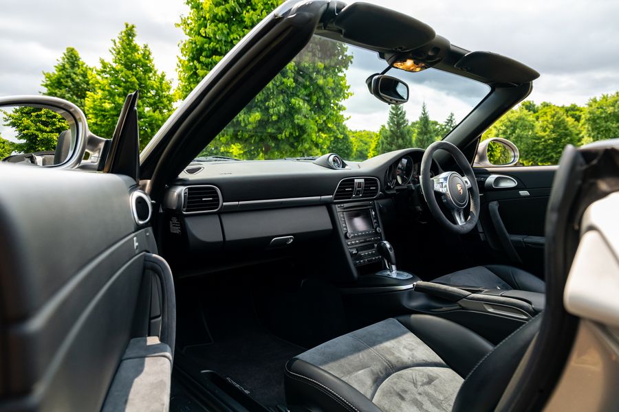2011 '11 Plate' With 28,150 Miles. 997.2 GTS Cabriolet. 7 speed PDK. Finished in Platinum Silver Metallic with Black Leather/Alcantara sports seats and Black fabric roof. Great Spec From New, Extras Are: Porsche Doppelkupplung (PDK), Adaptive sports seats, Extended navigation module, Sports exhaust system, Bose sound system - coupe, Telephone module for PCM with Bluetooth, Sport Chrono Package Plus, Automatically dimming interior and exterior mirrors with integrated rain sensor, Park Assist, Cruise control, Seat heating, Floor mats - interior colour coded, Windscreen with grey top tint And Instrument dials in Black.