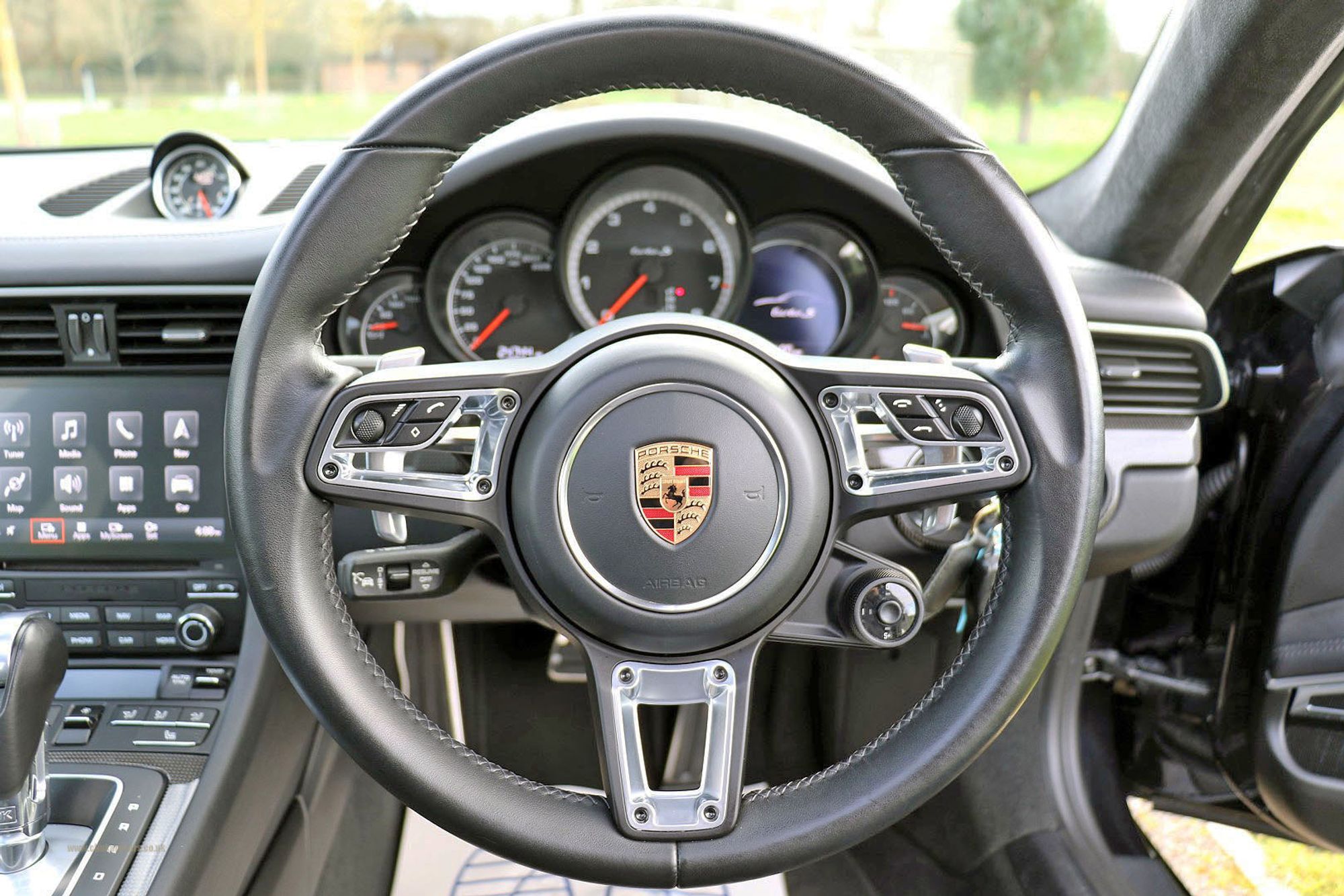 2016 '16' reg with 24,750 miles. Jet Black Metallic with Black Leather, Burmester High End Surround Sound System, Electric Tilt and slide Glass Sunroof, Adaptive Cruise Control with Porsche Active Safe, Carbon Fibre Illuminated Door Sills, Transmission Tunnel in Leather with Decorative Stitching, Painted Side Skirts, Privacy Glass, Painted Rear Side Intakes, LED Main Headlights including Porsche Dynamic Light System, Light Design Package, Rear Wiper, Steering Column Casing in Leather, Power Steering Plus, Porsche Logo on Arm Rest/Storage Bin and Porsche Crests on Headrests, 20" 911 Turbo S Wheels, Heated Multi Function Steering Wheel, Heated Seats, Sports Exhaust, KW Height Adjustable Springs by JZM, Full Body PPF, Full Service History.