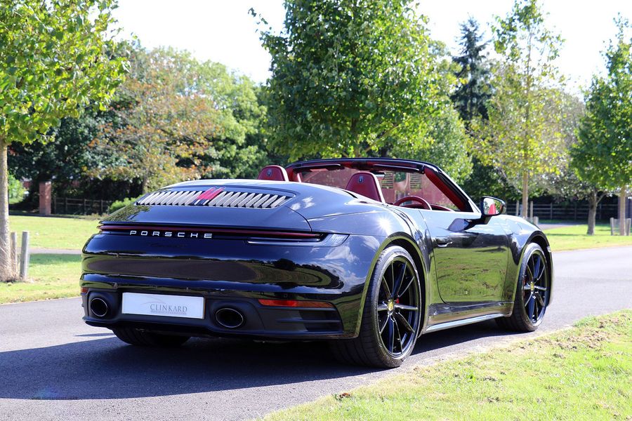 2019 '19' reg with 5455 miles. Jet Black Metallic with Bordeaux Leather, Sports Exhaust System in Black, Power Steering Plus, Wheels Painted in Jet Black Metallic, GT Sports Steering Wheel in Leather, Cabin Ioniser, Porsche Crests on Head Rests, Electric Folding Exterior Mirrors, Lane Change Assist, Sports Chrono Package with Mode Switch, Night View Assist, BOSE Surround Sound System, Automatic Dimming Interior and Exterior Mirrors with Integrated Rain Sensor, Sports Design Side Skirts.