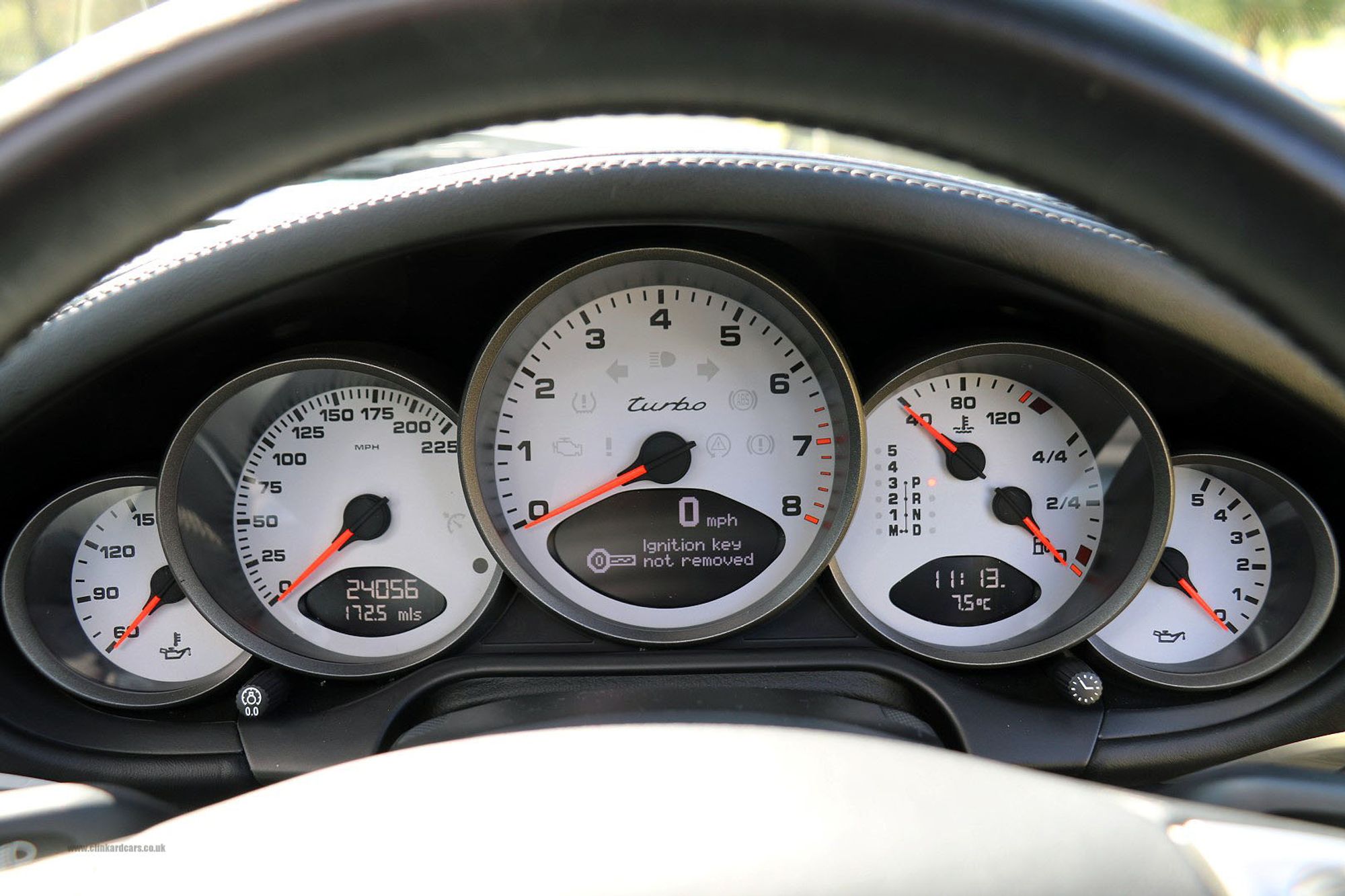 2008 '08' reg with 24,075 miles GT Silver with Black Leather, Tiptronic S Automatic Gearbox, Heated Seats, Rear Wiper, 3 Spoke Multifunction Steering Wheel in Smooth Leather, Cruise Control, Park Assist Rear, Sports Chrono Package Plus, Electric Tilt and Slide Sunroof, Telephone Module, CDC 4 Discs Autochanger, Red Brake Calipers, Electric Seats with Driver Memory and Lumbar Support, Ipod Integration with Lead, Bose Surround Sound System, This 997 Turbo has a good service history with both Porsche Main Dealers and Specialists, and has just been serviced and MOT'd. The condition is fabulous inside and out, it drives superbly and is ready to use straight away by the lucky new owner.