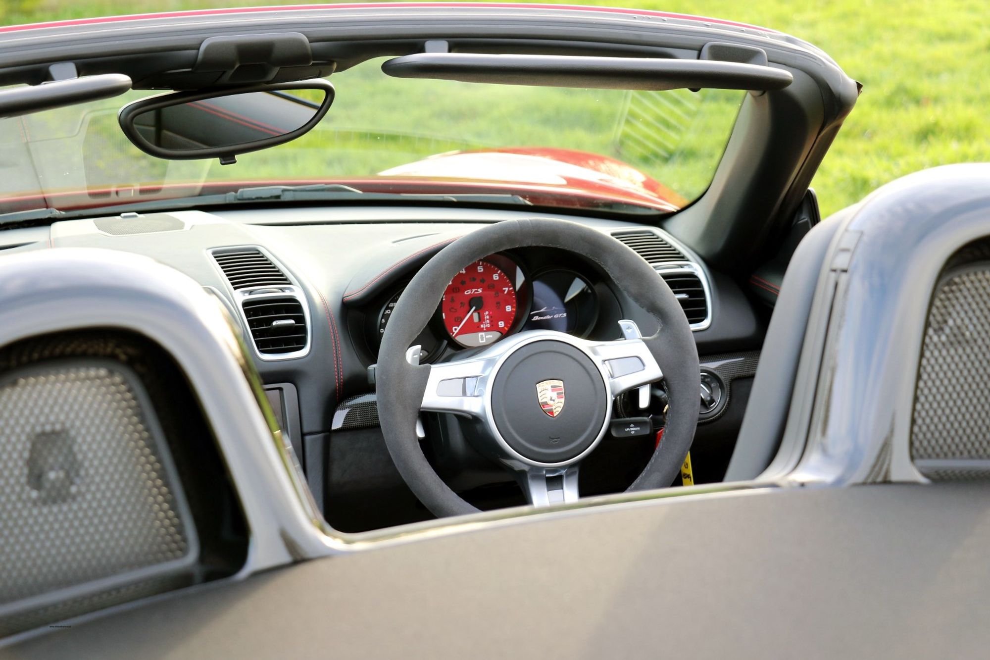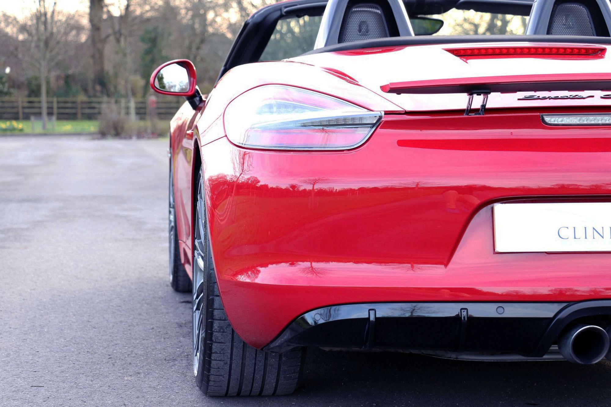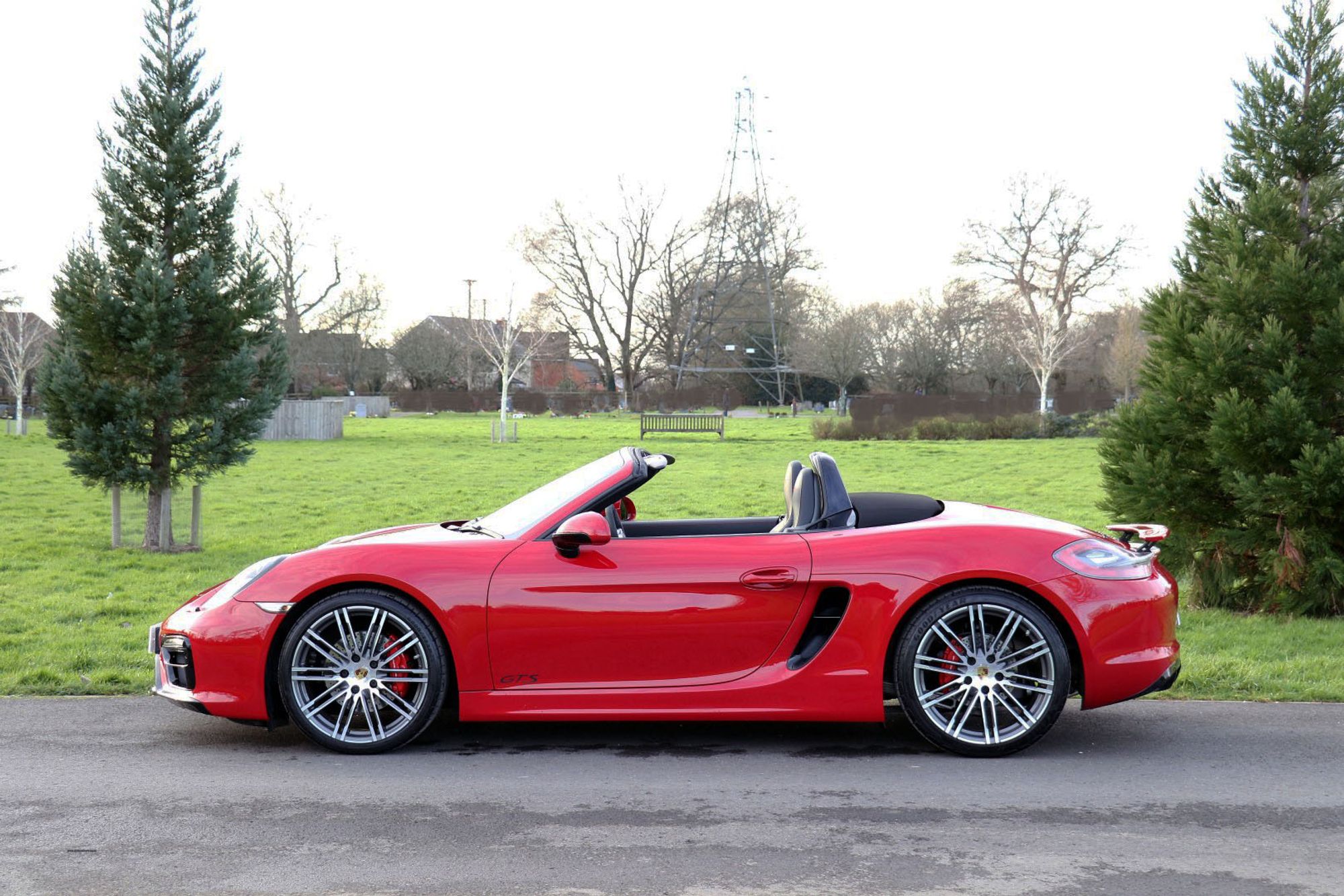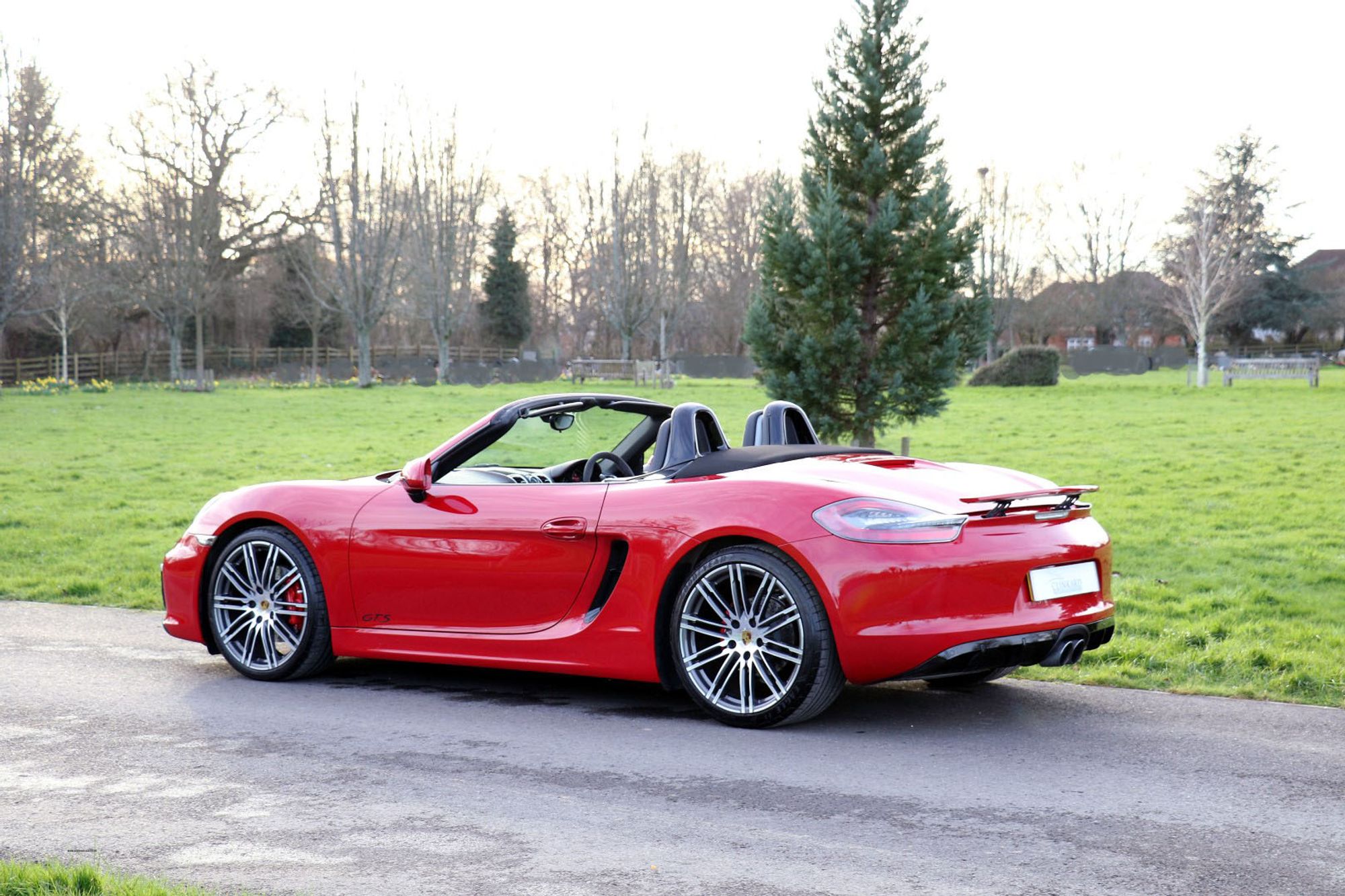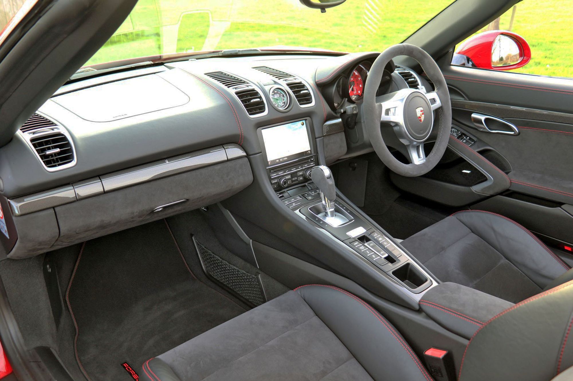 The Porsche Boxster range has undergone some significant changes in the latest 718 series, and one of the most major changes is the movement from the Horozontally Opposed 6 Cylinder Engines that have been the trademark with both 911's and Boxsters for 50 years give or take, to 4 cylinder turbo charged units. Whilst understanding the true spirit of keeping emmissions down and making these cars more fuel efficient, true Porsche enthusiasts may well argue that these newer models have lost something in this movement. There is joy to be had from the noise of the flat 6, and for the instant response one gets from the naturally aspirated 3.4 litre engine that this car is fitted with. This is a substantial engine with 330 bhp and 273lb.ft of torque, and it sits perfectly nice and low, and just forward of the rear wheels exactly where it should be for perfect weight distribution. It's a fantastic car to drive, and in GTS guise it is the last and best of this model. This is an End of Era car that could well prove to be a very interesting propsition in years to come, and in Carmine Red with black detailling it looks amazing.