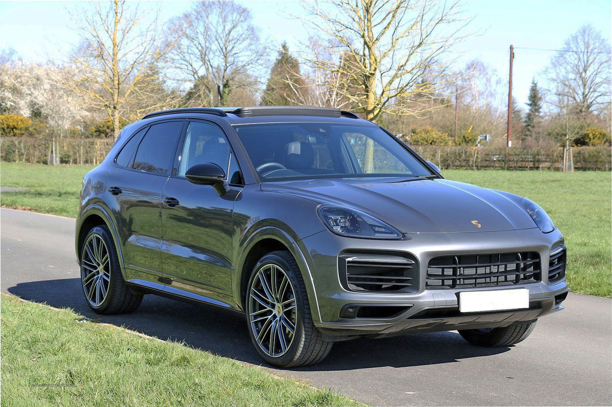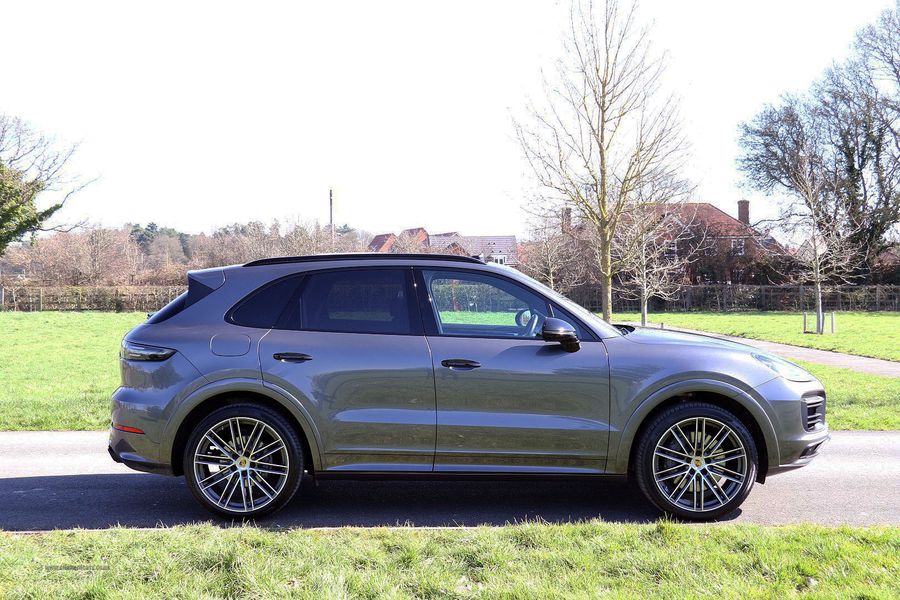 2019 '69' reg with 9,496 miles. Quartzite Grey with Black Leather, 21" Turbo Design Multispoke Diamond Cut Alloy Wheels in Grey, Panoramic Sliding Glass Roof, Black Gloss Interior Trim, PCM Navigation with Multimedia Interface, Bluetooth Phone Preparation, Bluetooth Streaming, Bose Surround Sound Speaker System, Wireless Phone Charging, Park Assist with Reversing Camera, Privacy Glass, Black Badging, Keyless Entry and Start, Sports Chrono Package, Heated Leather Steering Wheel, Cruise Control, Adjustable Sports Suspension, Electric Memory Seats with Lumbar Support, Porsche Crests to Headrests, USB Charging Points Front and Rear, Colour Crested Wheel Centres. This Porsche is in Exceptional Condition, and the attention paid to keeping it that way by the previous owners even extends to the plastic covers still beig in place on the floor mats.