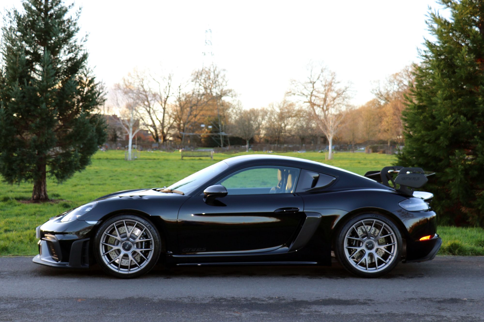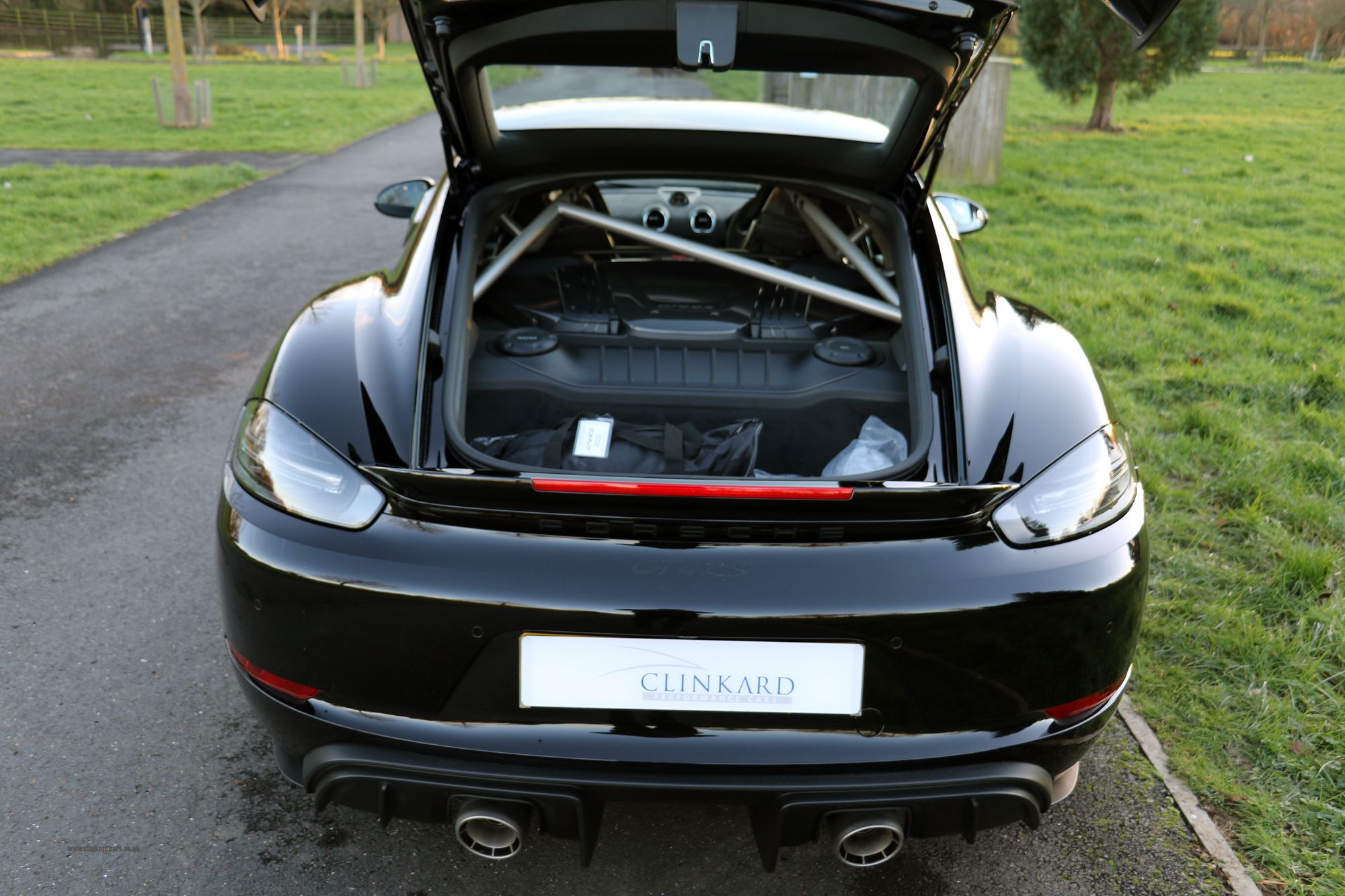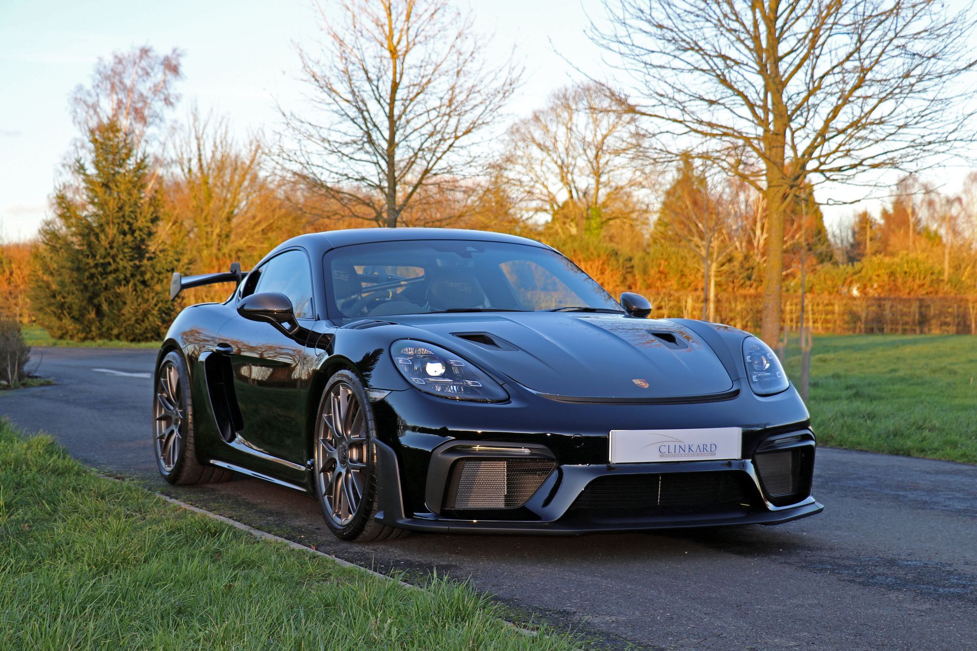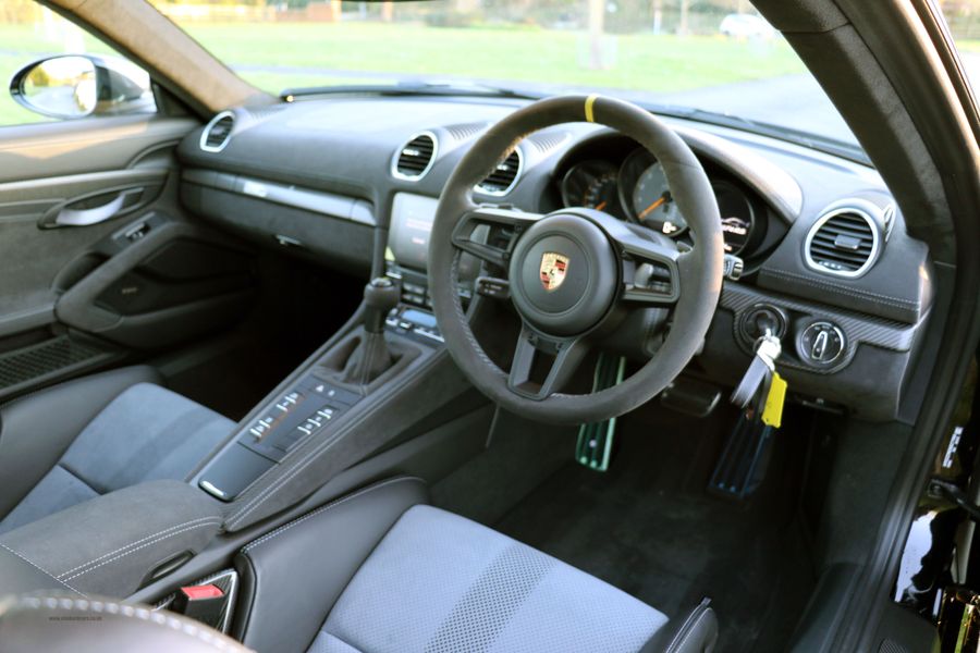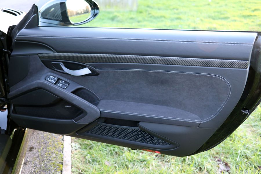 2022 '72' reg with 281 miles. Jet Black with Black Leather/Alcantara, Carbon Fibre Race Seats, Clubsport Package, 20" Cayman 718 GT4 Forged Magnesium Wheels, Cruise Control, Front Axle Lifting System, LED Main Headlights including Porsche Dynamic Light System Plus (PDLS Plus), Light Design Package, Park Assist Rear with Reversing Camera, Bose Surround Sound System, Window Triangle Trims in Carbon, Sports Chrono Package with Mode Switch, Black Brake Calipers, Carbon Illuminated Door Sills. This is a Rare and Beautiful GT4RS with Clubsport and Weissach Packs, available now and As New.