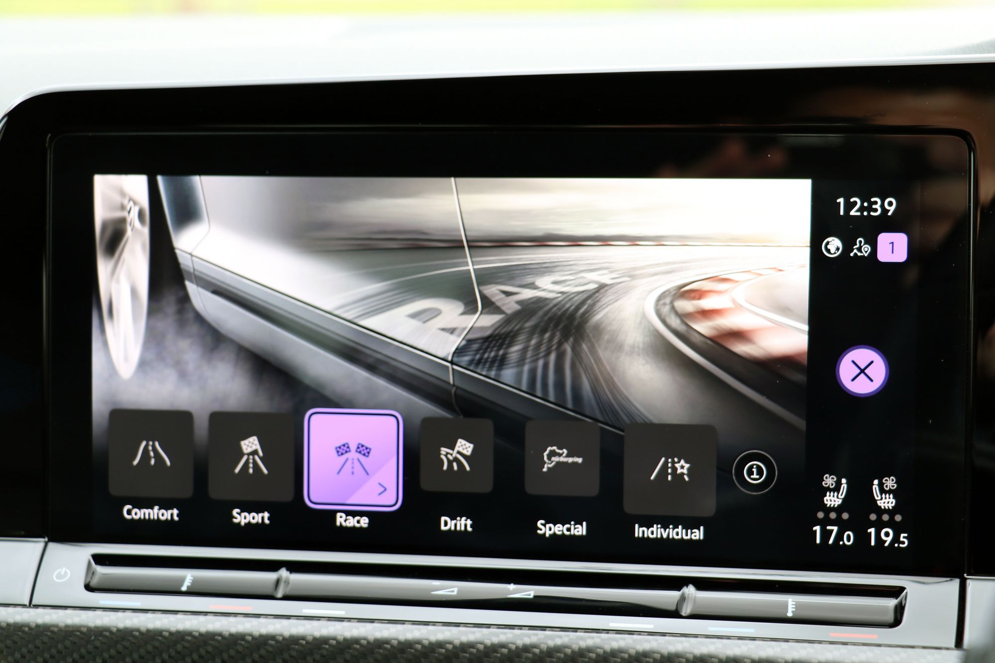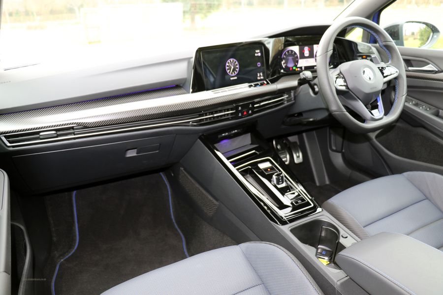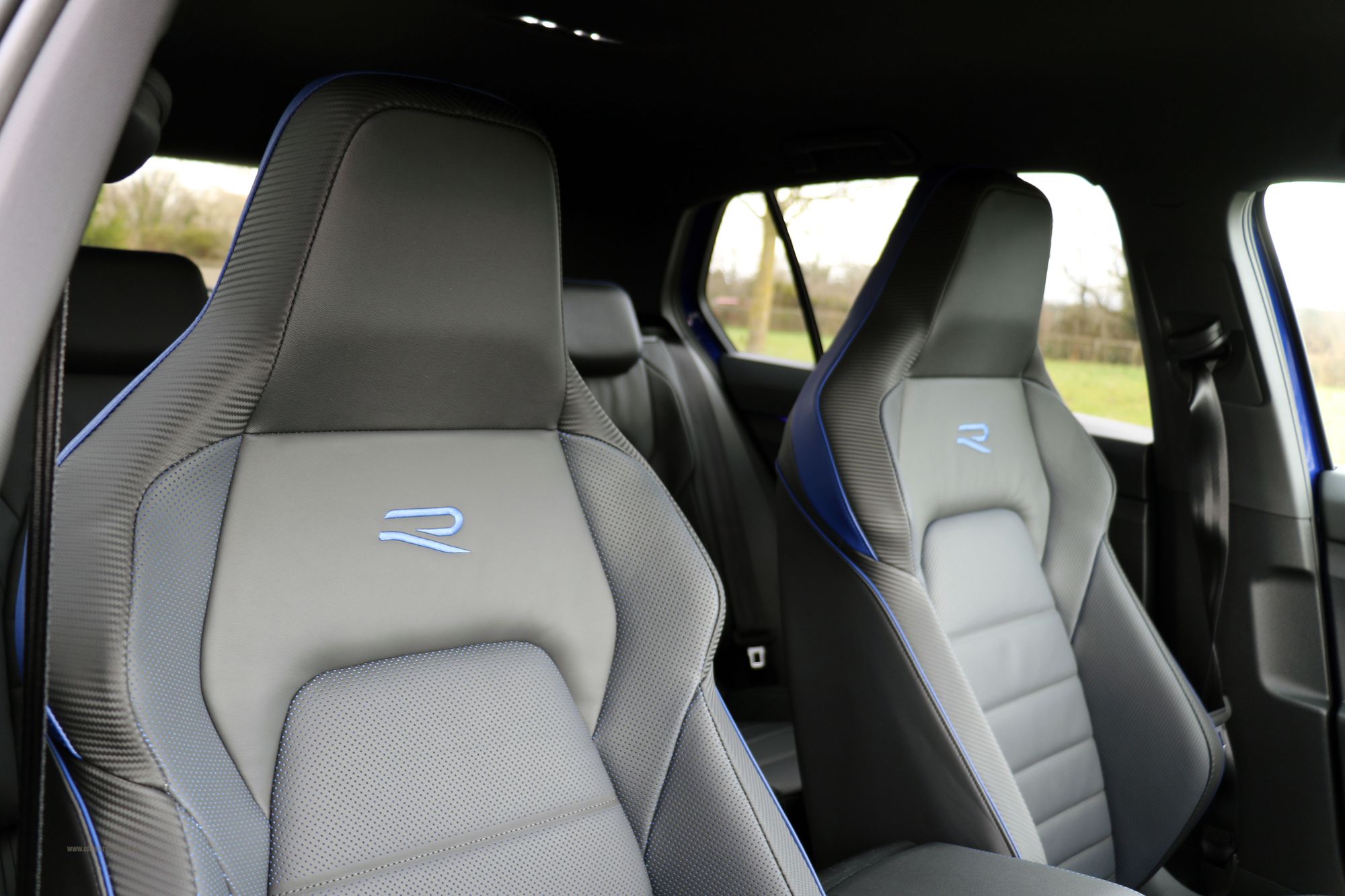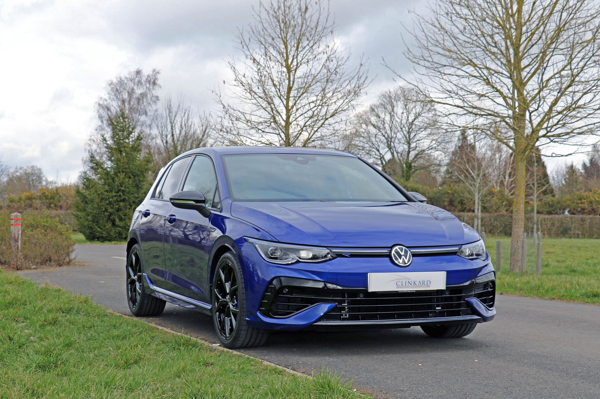 2022 '72' reg with 577 miles. Lapis Blue with Blue/Black and Carbon Black Leather 'R' Sports Seats, 19" Estoril Alloy Wheels in Gloss Black, Privacy Glass to Rear Windows, Black Exterior Styling Package including Door Mirrors, Blue Brake Calipers, Front and Rear Parking Sensors, Electric Memory Seats with Lumbar, Heated Sports Leather Flat Bottom Multifunction Steering Wheel, Piano Black Interior with Full Carbon '20' Package, Heated and Cooled Seats, 3 Zone Climate Control, VW iQ Drive with Lane Assist, Radar Assisted Cruise Control, Heated Electric Folding Door Mirrors, Fully Digital Dash, Performance Package with Drift Control and Nurburgring Setting.